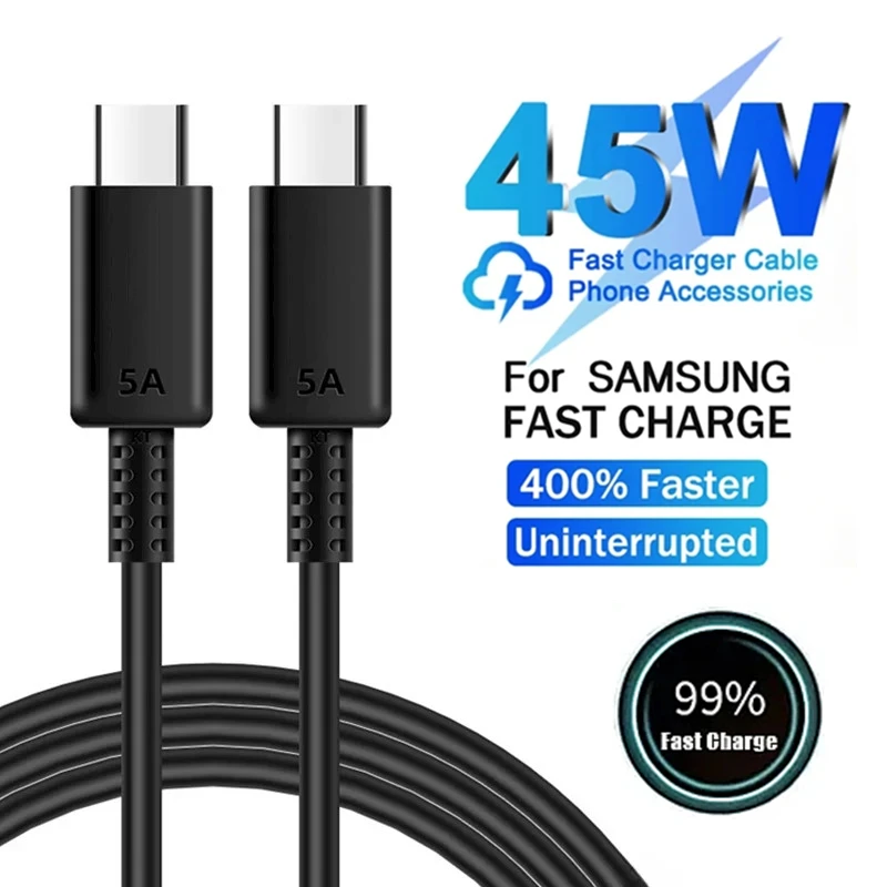 5A PD 45W Dual USB-C Super Fast Charge Cable for Samsung S20 S21 FE S22 S23 S24 Plus Note 10 20 Ultra A14 A15 A25 A53 A54 A55 A71 A90 Z Flip4 Flip5 Fold5 Type-C to Type-C Quick Charging Data Cable 1m 1.5m 2m