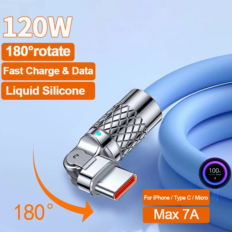 Comprar Cable de carga súper rápida USB de silicona líquida, Cable de carga tipo C para iPhone, Xiaomi, Huawei, Samsung, Micro Cable de juego, 120W