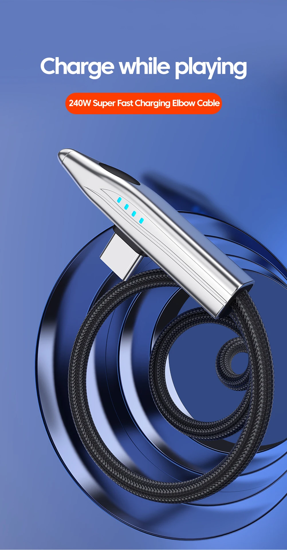 Comprar Cable de carga súper rápido de 240W tipo C a tipo C para computadora portátil Cable USB A C de 100W 90 ° Cable de datos de juego de codo para iPhone 15 16 Samsung