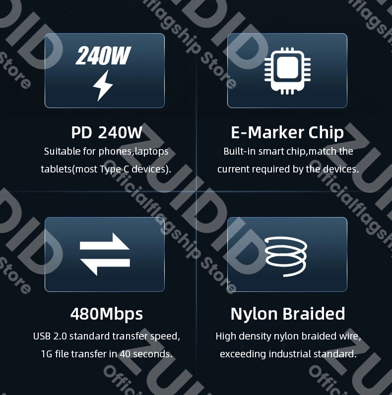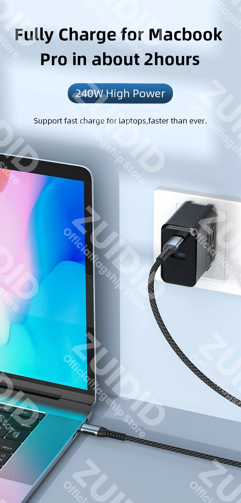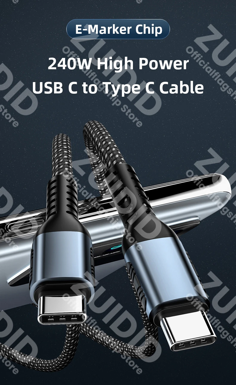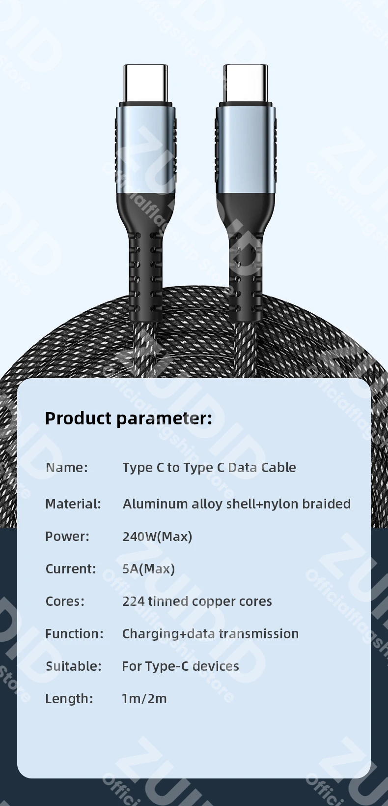 Cable de carga súper rápida PD 240W para iPhone 15 Plus Pro Max tipo C a USB tipo C Cable 5A para MacBook iPad Cable DE DATOS 2M