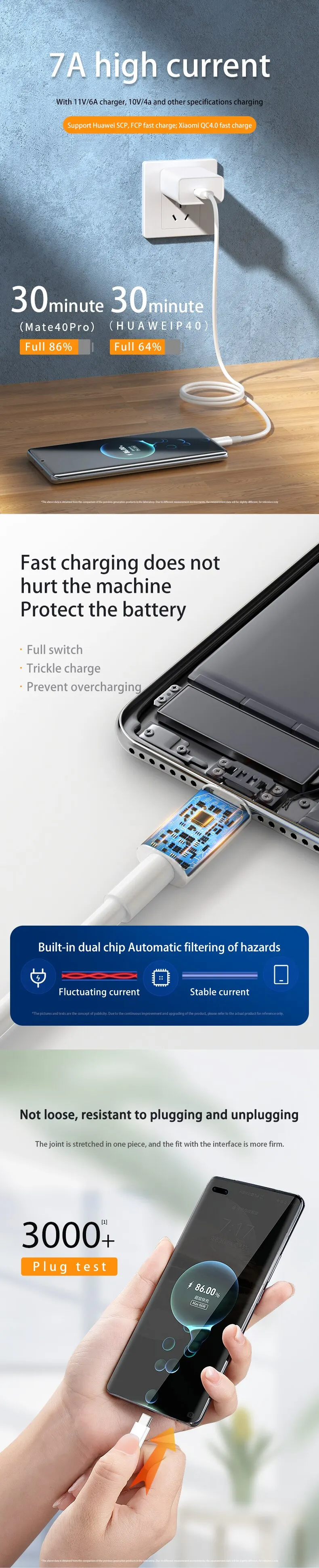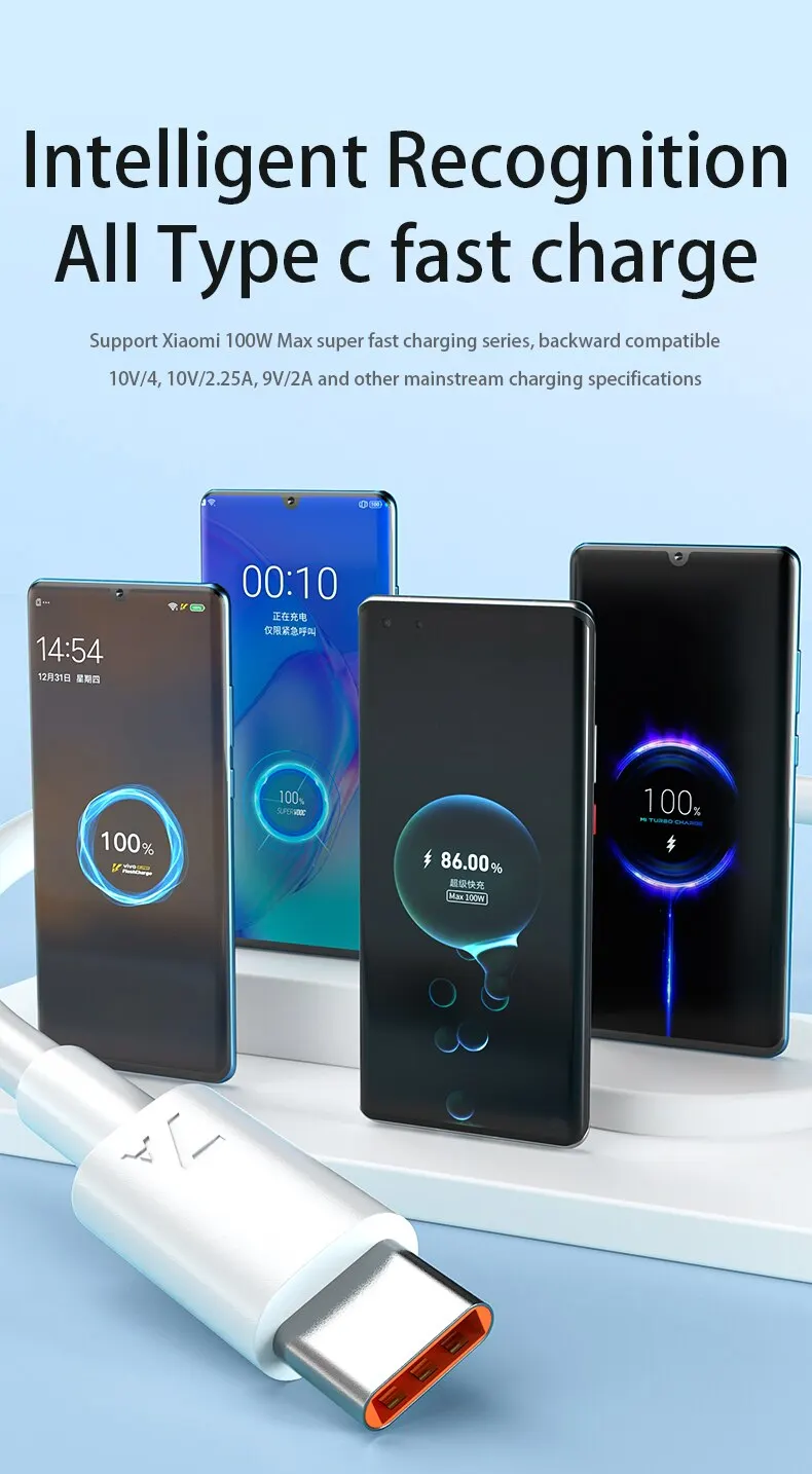 Cable de carga súper rápido USB tipo C 7A 100W para Huawei Mate 60 50 40 Pro P60 P50 Nova 8 9 10 Honor Xiaomi 13 12 Redmi K60 K50 Note 13 12 11 Pro POCO F5 X5 M5 OPPO Realme VIVO iQOO Cable cargador USB C 0,25m 1m 1,5 m 2m