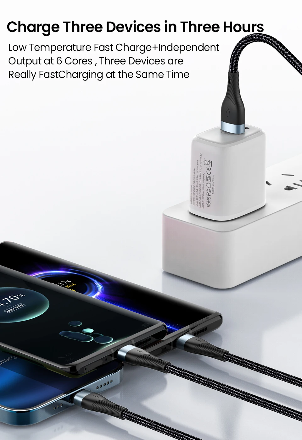 Nota: Solo Huawei P50 series/Mate 40RS/Pro +/Pro puede salir66W(11V/6A)Máx., solo Honor 50 Pro puede lograr100W(20V/5A)Salida, y debe equiparse con/Huawei/Honor original 66W/100W cargador rápido
