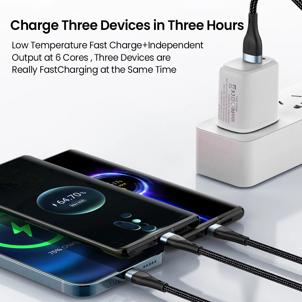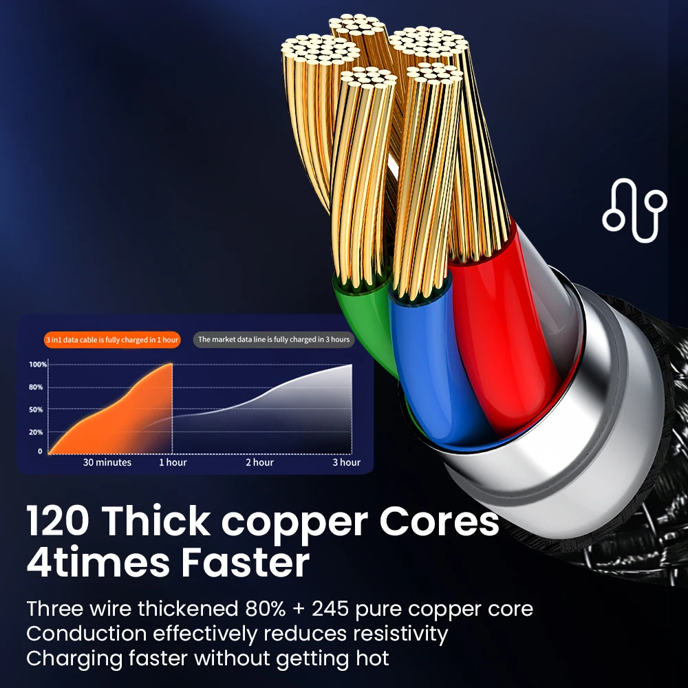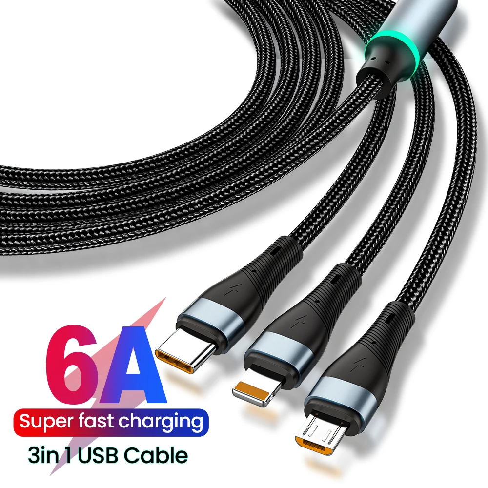 Comprar Cable de carga tipo C 6A 3 en 1, Micro USB 100W, Cargador rápido, Cable tipo C, Cables de datos para iPhone, Sansung, Xiaomi, Huawei