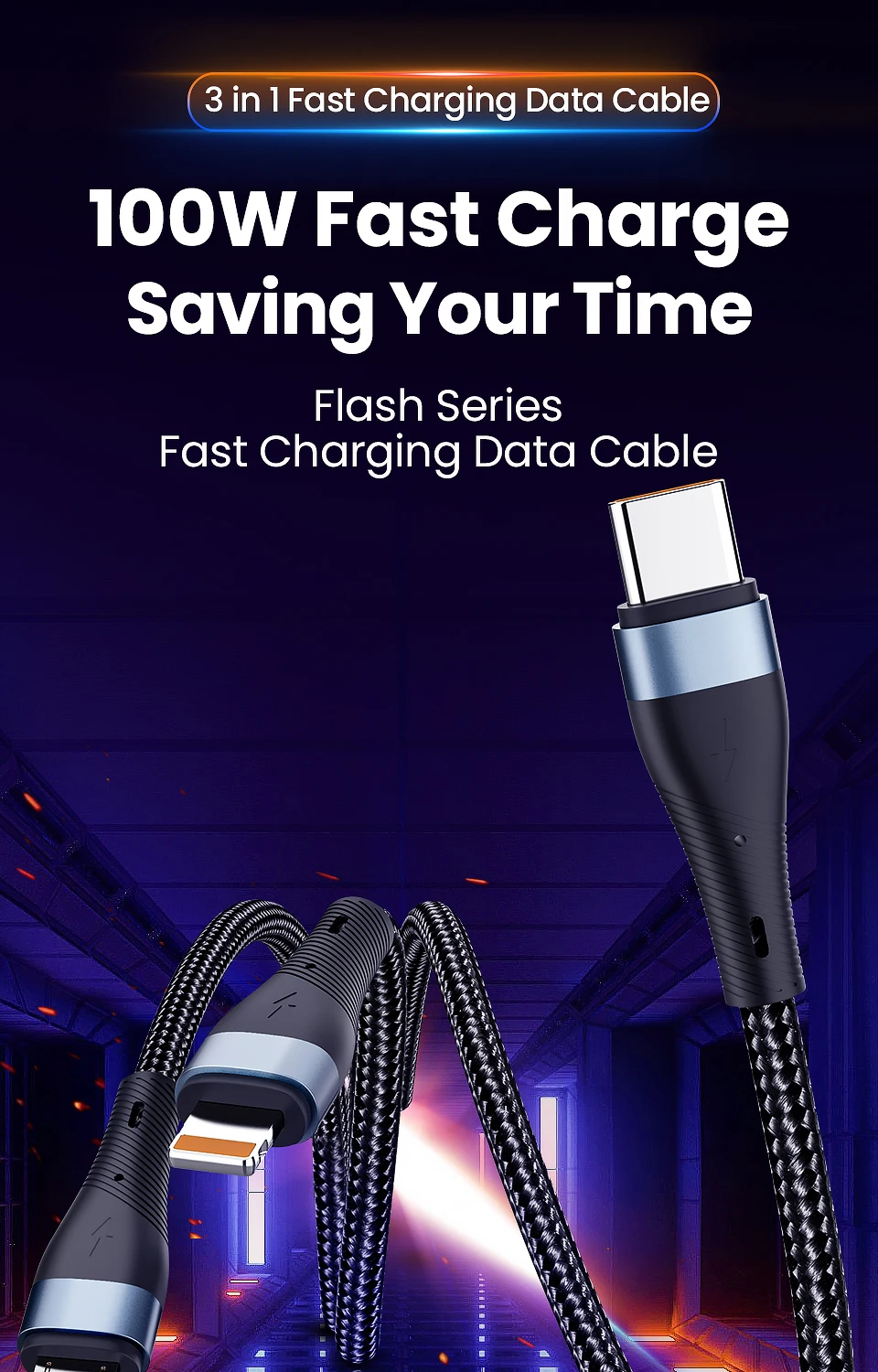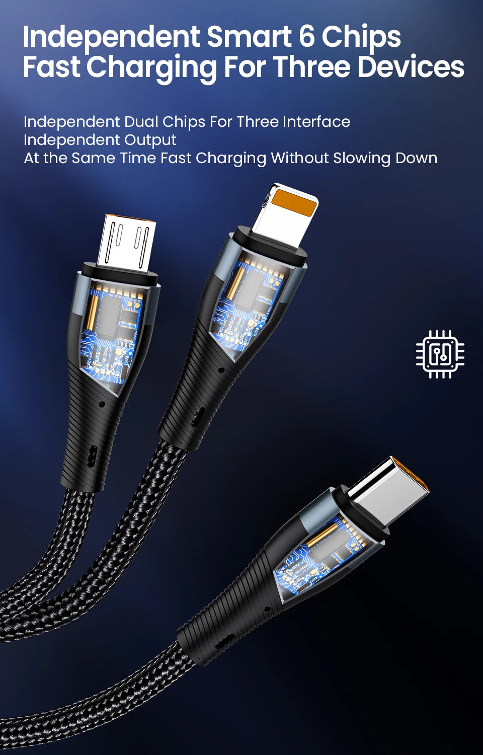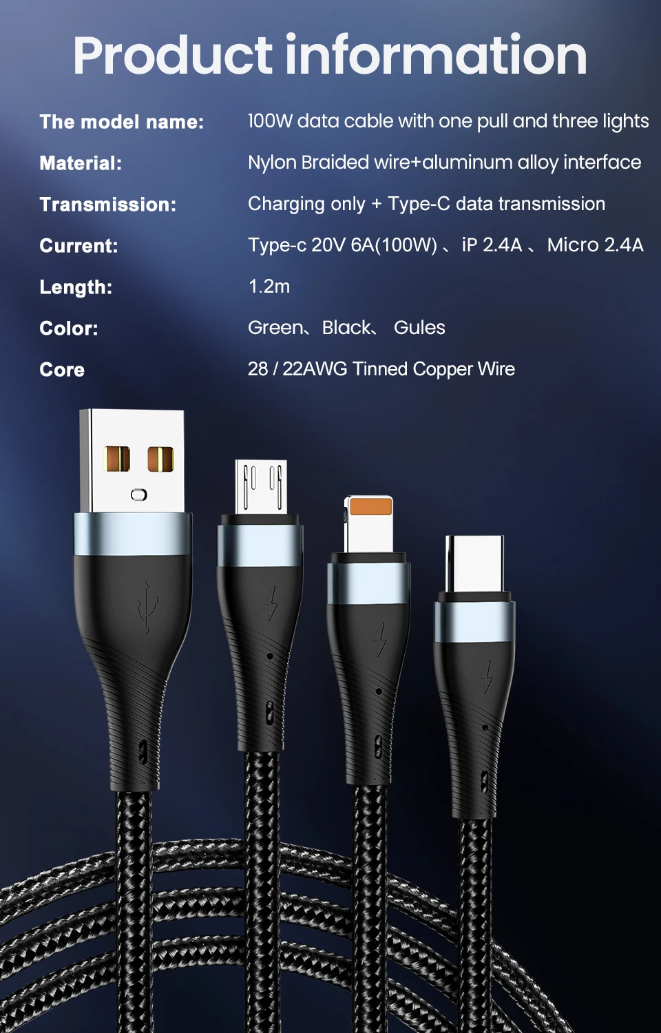Comprar Cable de carga tipo C 6A 3 en 1, Micro USB 100W, Cargador rápido, Cable tipo C, Cables de datos para iPhone, Sansung, Xiaomi, Huawei