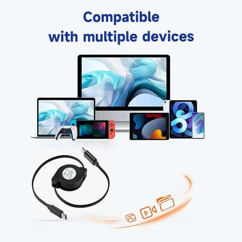 Experimente la carga y sincronización sin complicaciones con este cable de datos tipo C de doble extremo. Su tamaño compacto y sus características retráctiles lo hacen ideal para viajar, lo que garantiza que se quede donde quiera que vaya.