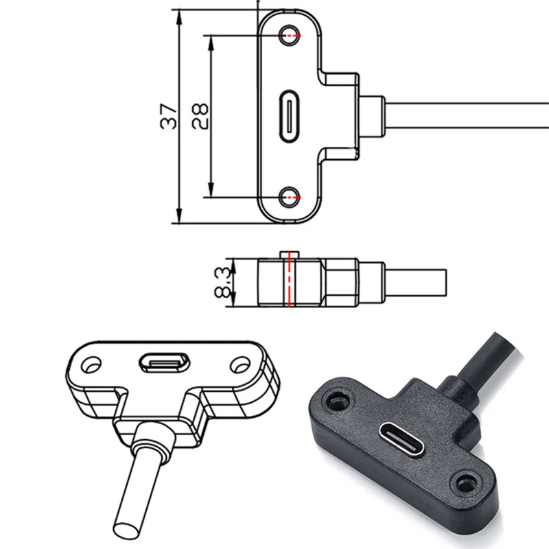 30CM tipo-c USB2.0 90 ángulo macho a hembra extensión montaje en Panel tipo Cable cable de carga 1 pies 0,3 M