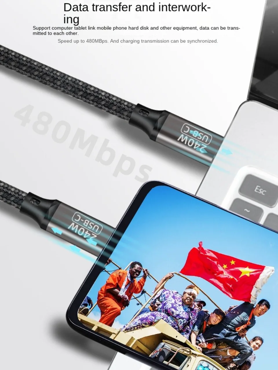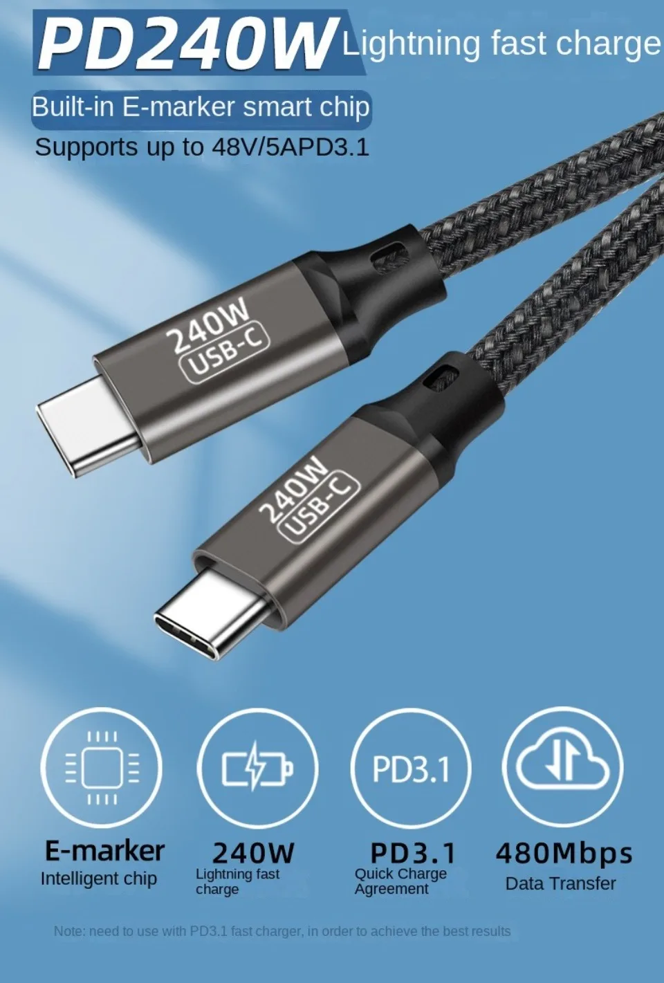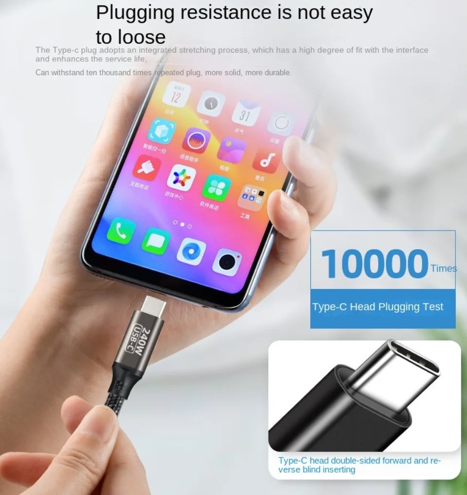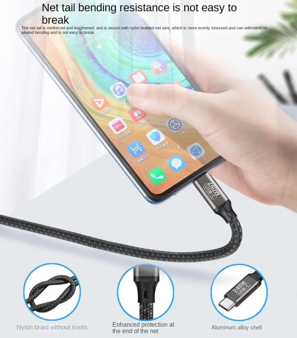 Comprar Cable de carga ultrarrápida PD 240W para Macbook Pro 100W 5A USB tipo C, Cable de datos para iPhone 15 Pro Max Xiaomi 14 Oneplus Samsung