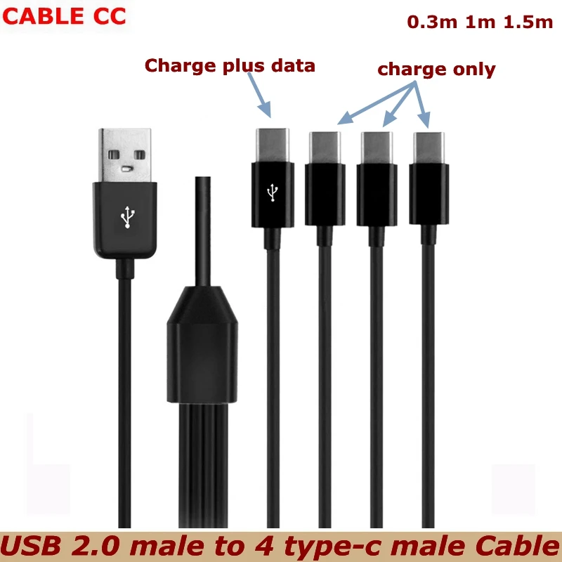 Cable de carga USB uno a dos tres cuatro un punto dos en uno con interfaz 4tpye-c cable de datos de carga cable de carga USB 0,3 m/1m/1,5 m