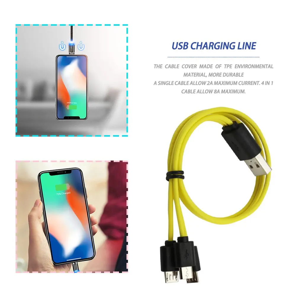El cable micro USB es compatible con la mayoría de cargadores con puertos USB. No se puede utilizar para transferir datos, solo para cargar. Los cables de carga USB múltiples están hechos con núcleos de alambre de alta calidad y puertos premium que mejoran la durabilidad, la seguridad y la flexibilidad. Diseño múltiple 3 en 1, transformación libre, simple, Ligero, portátil y conveniente.