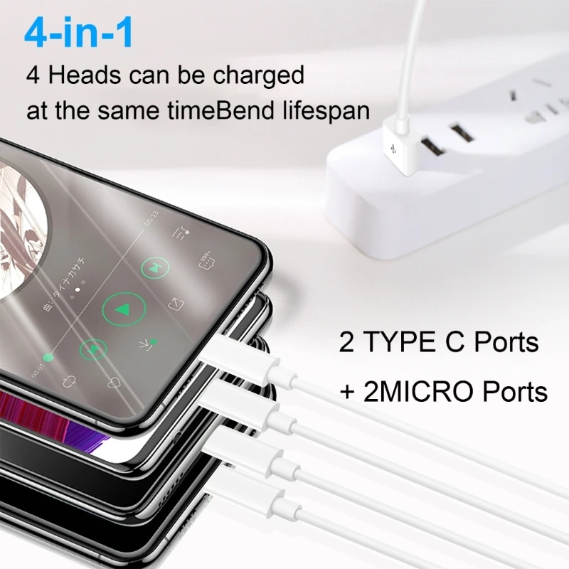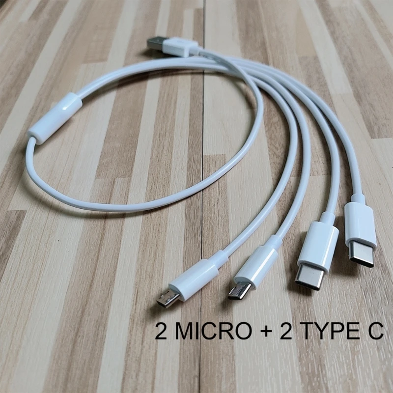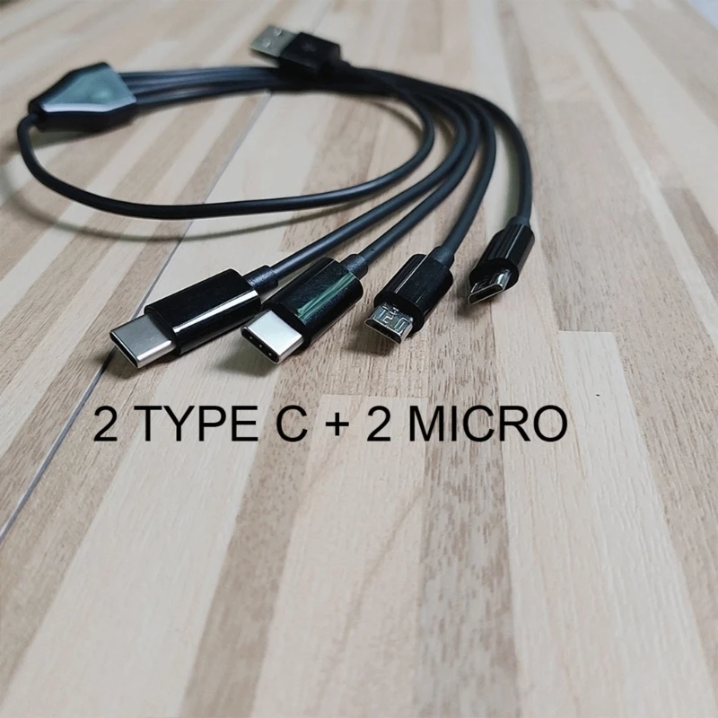 Comprar Cable de carga USB de 4 vías, portátil, 1 en 4 salidas, Cable de carga multipuerto USB a 2x tipo-c + 2x Micro Cable de extensión de energía K1KF