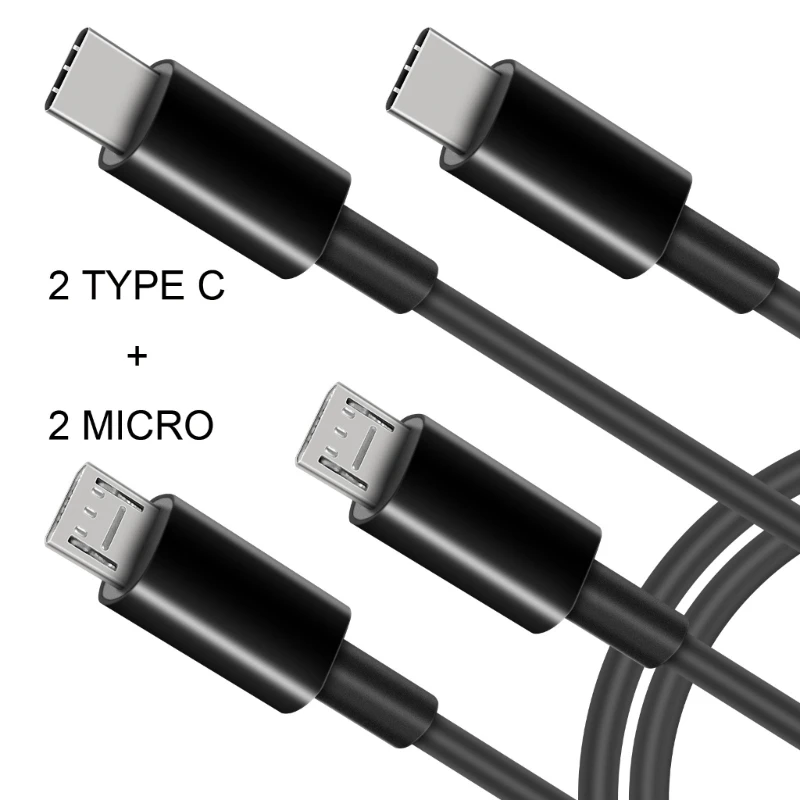 Este Cable de carga USB a tipo C y Micro cuenta con dos conectores tipo C y dos Micro, lo que le permite cargar varios dispositivos con un solo cable.