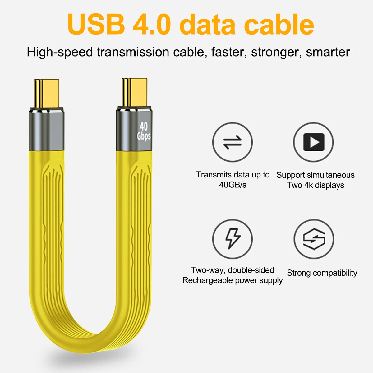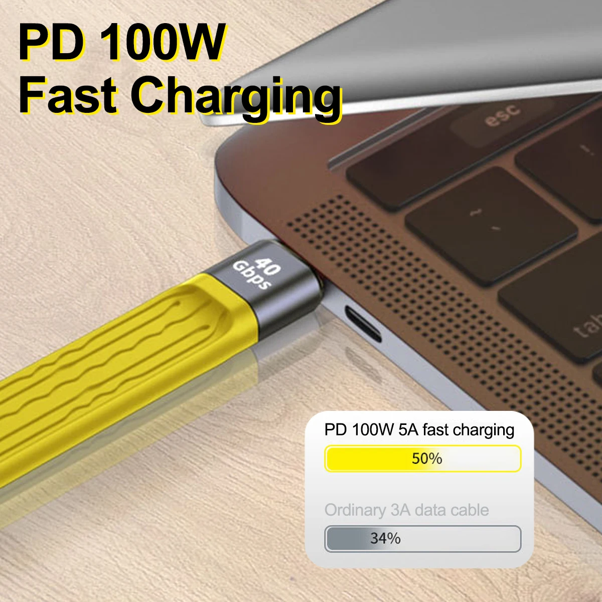 Comprar Cable de carga USB 4,0 Thunderbolt 3 tipo C, Cable de carga rápida PD, 100W, 5A, 4K @ 60Hz, 40gbps