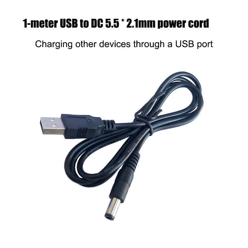 Cable de carga de USB a CC, fuente de alimentación de CC de 1mm, cable de núcleo de cobre puro, USB a cabeza redonda, Cable adaptador de corriente móvil de 12V CC