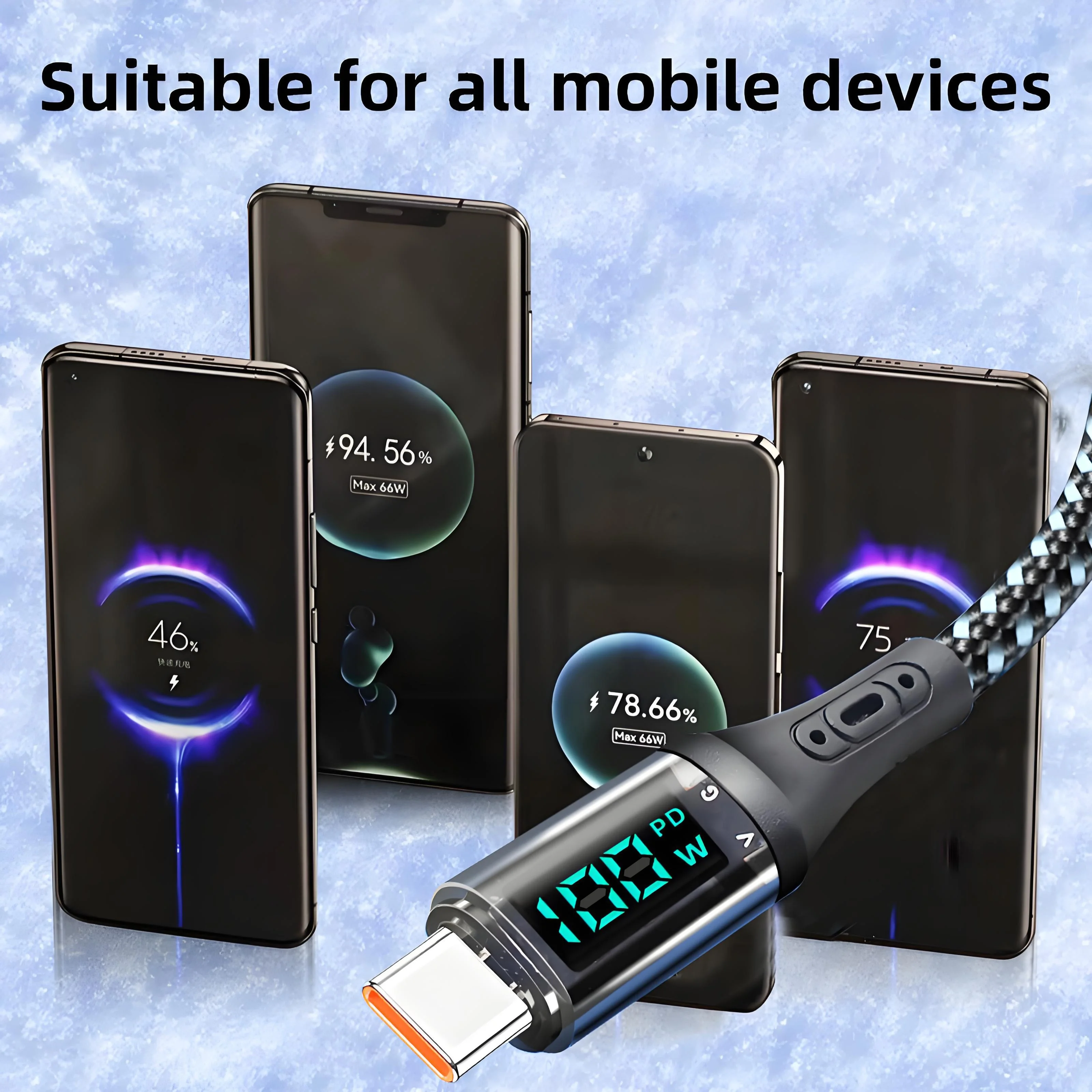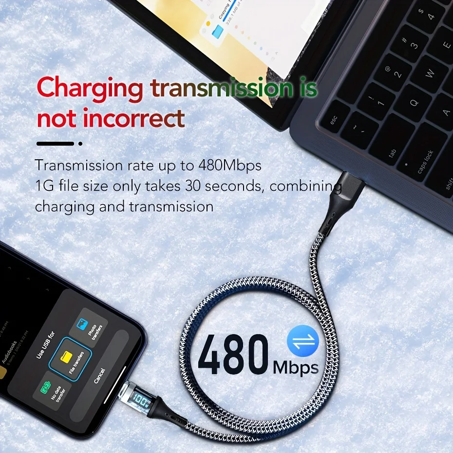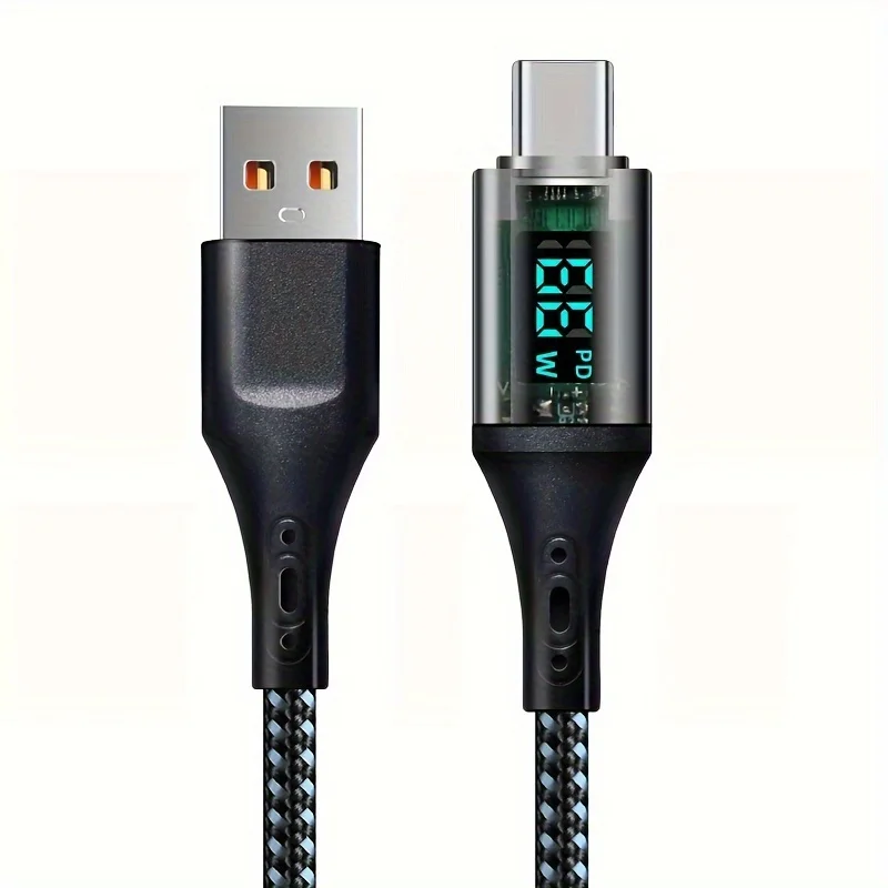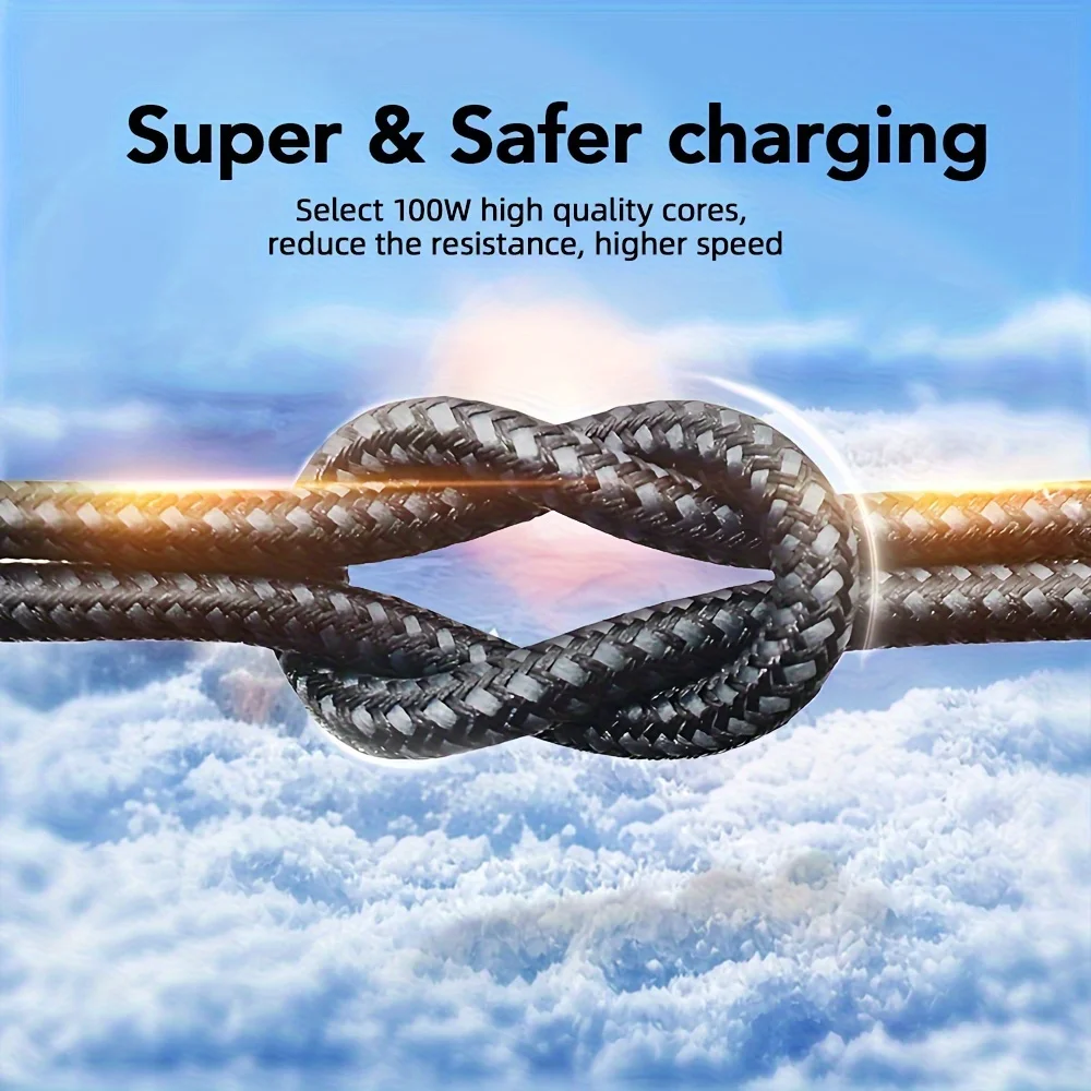 Cable de carga USB a tipo C redondo de tela PD de alta velocidad de 120W para teléfonos móviles carga rápida voltaje de funcionamiento de 36V modo de alimentación USB