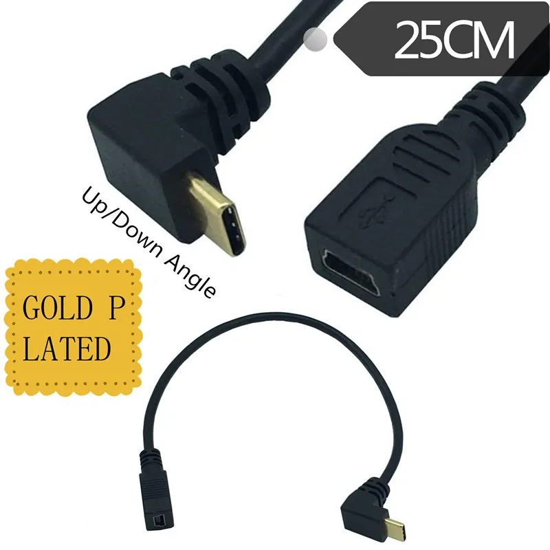 Comprar Cable de carga USB-C de 90 grados con ángulo arriba y abajo Cable convertidor hembra USB 3.1 tipo C macho a Mini USB (Mini B)
