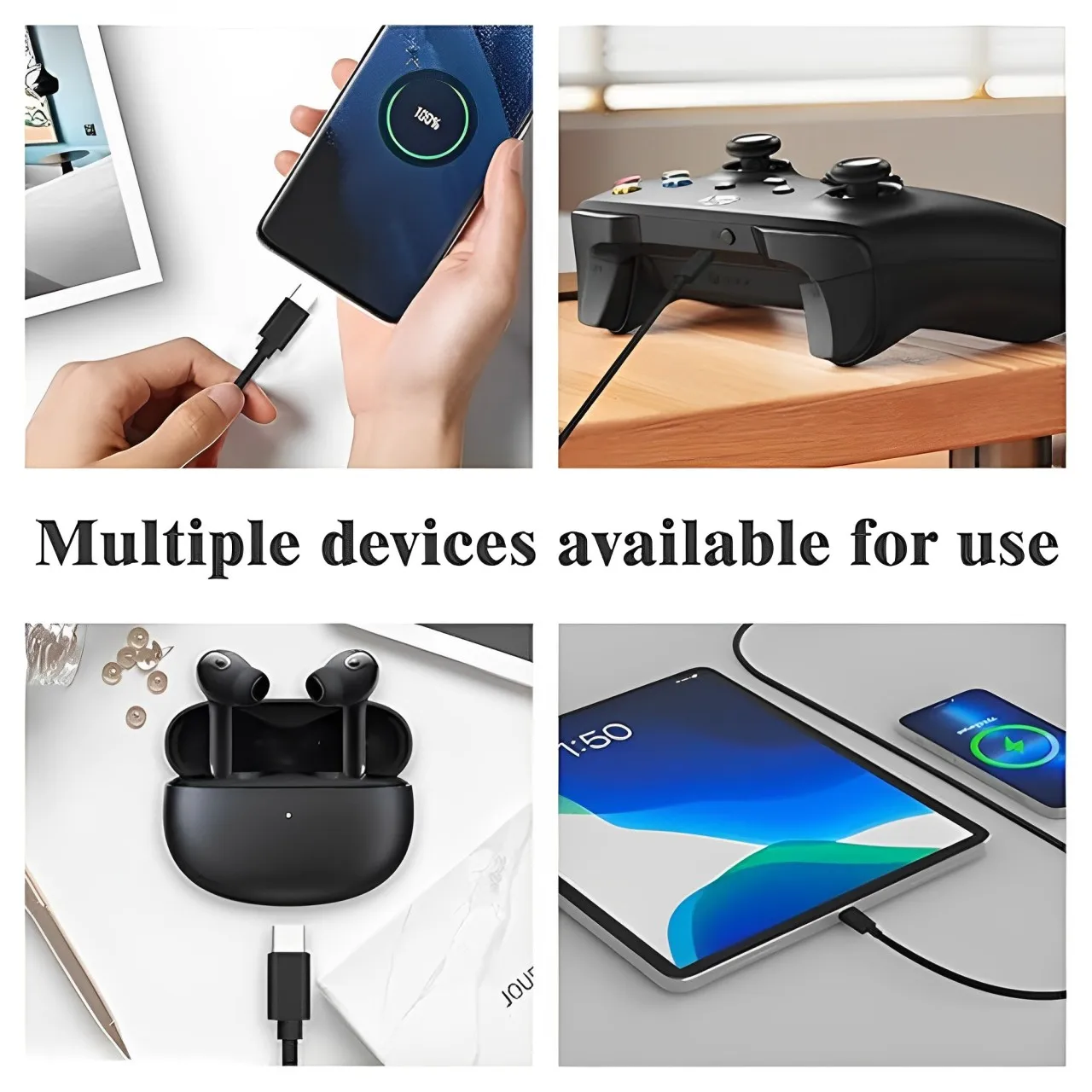 El cable tipo c es compatible con todo tipo de teléfonos móviles, estéreos, amplificadores, auriculares, auriculares Bluetooth, parlantes Bluetooth, parlantes y otros dispositivos electrónicos con interfaces tipo c.