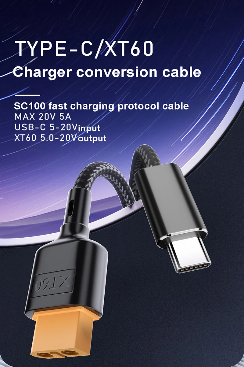 Cable de carga USB-C a XT60 para Cable Toolkitrc SC100 tipo C a XT60 para línea eléctrica de carga rápida Toolkitrc M7 M6D M8S 100W