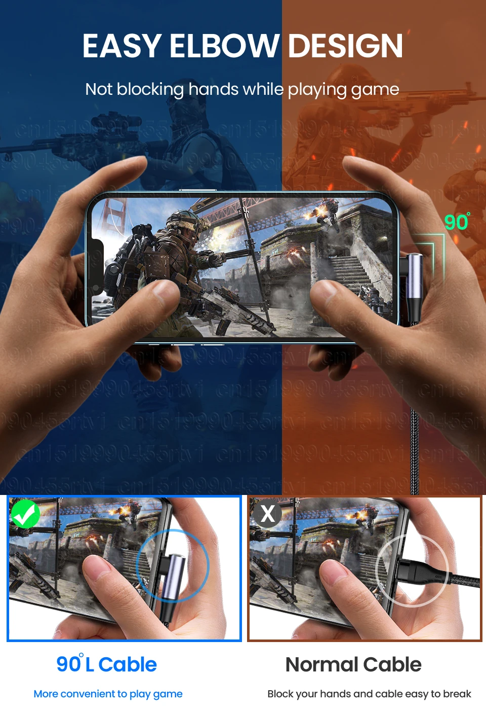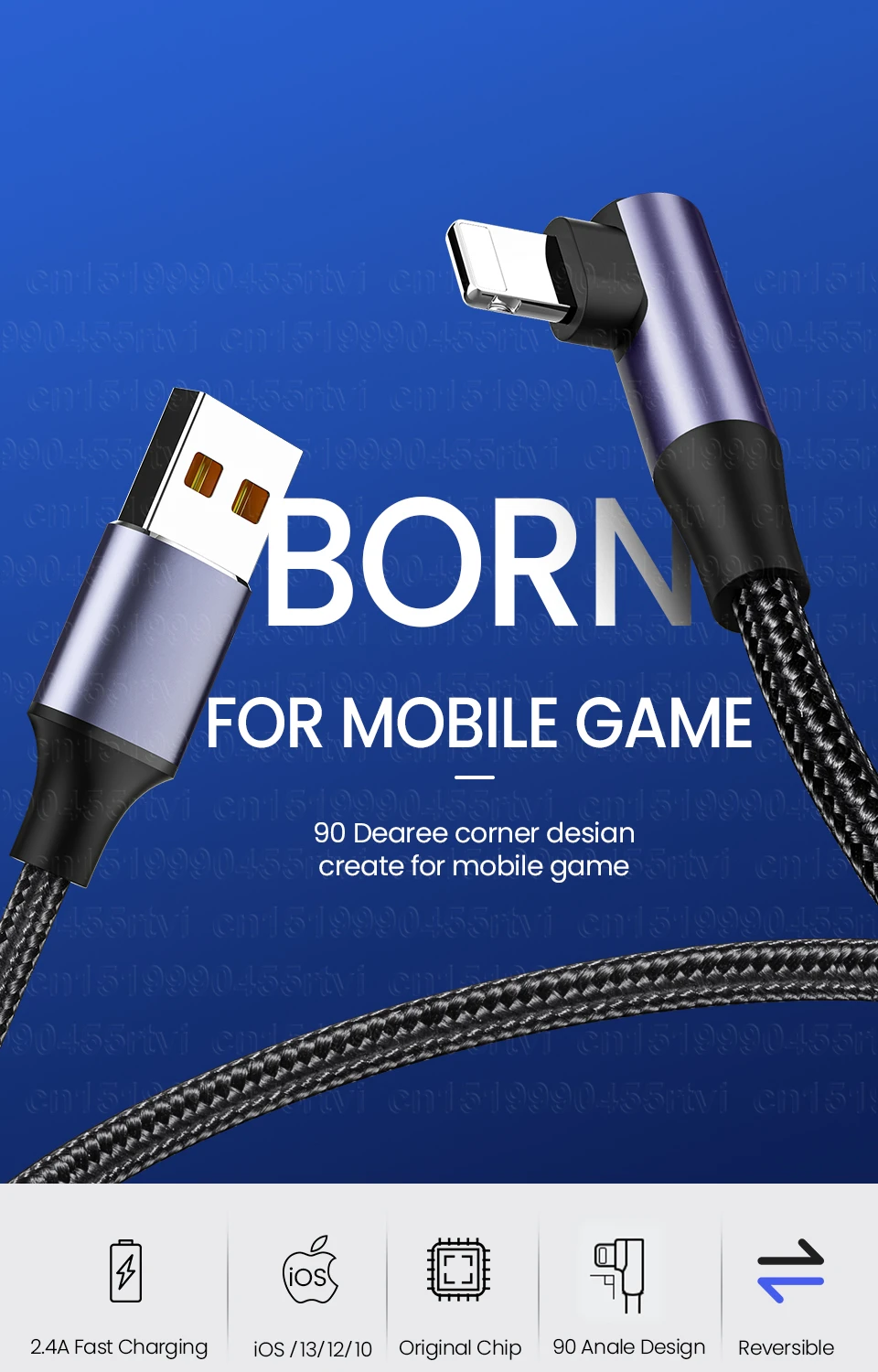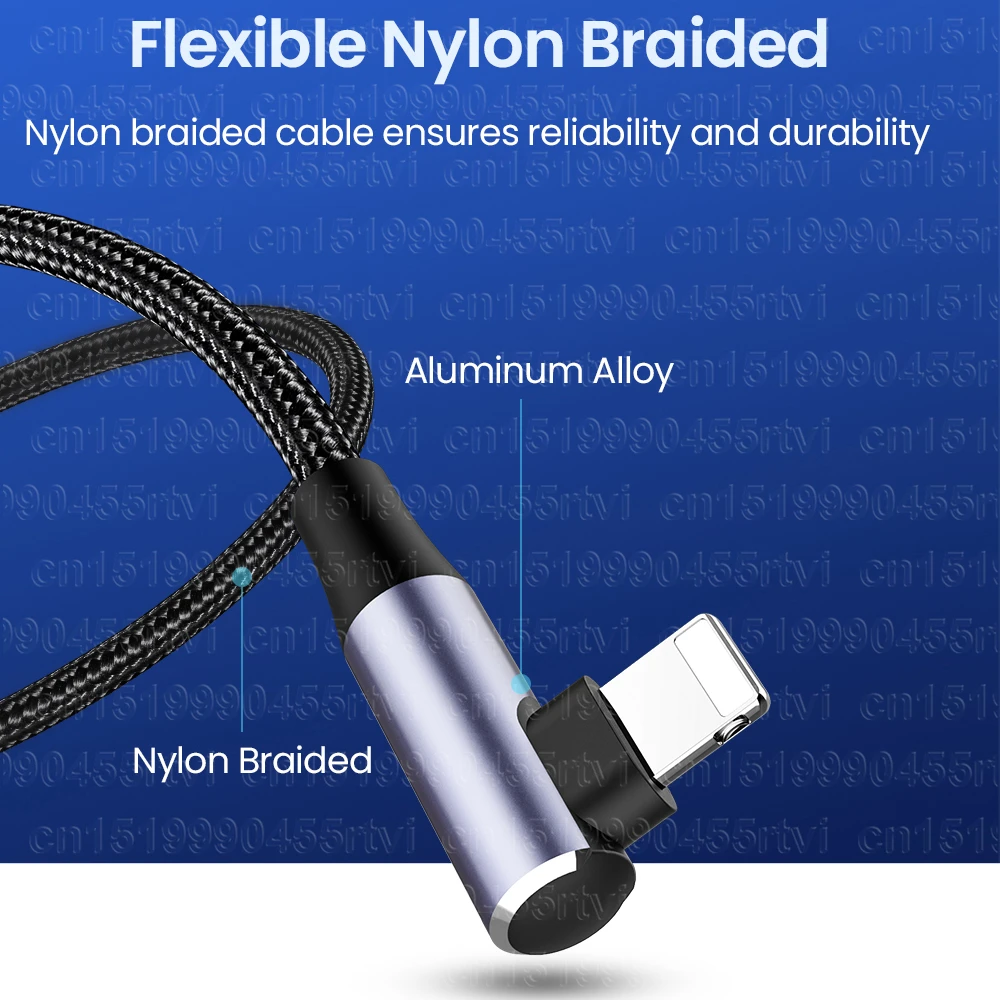Cable de carga USB codo para iPhone 13 12 11 Pro Max XS 6S 7 8 Plus Cable DE CARGA DE TELÉFONO MÓVIL DE ORIGEN Cable de cargador de datos 1/2/3M
