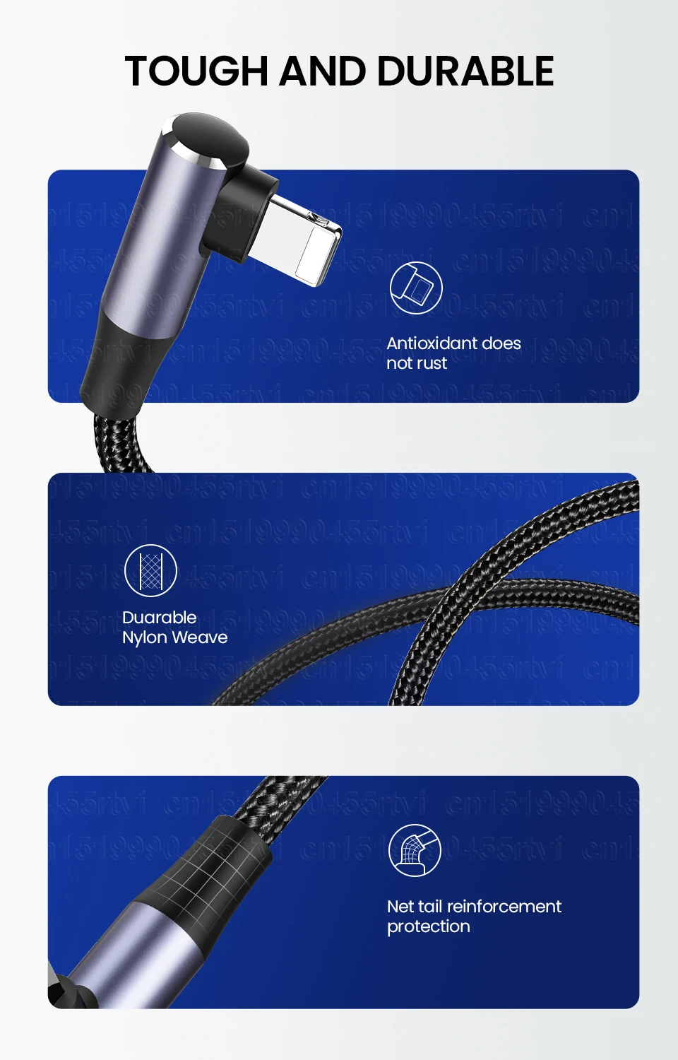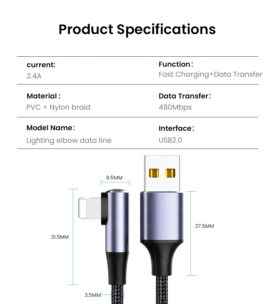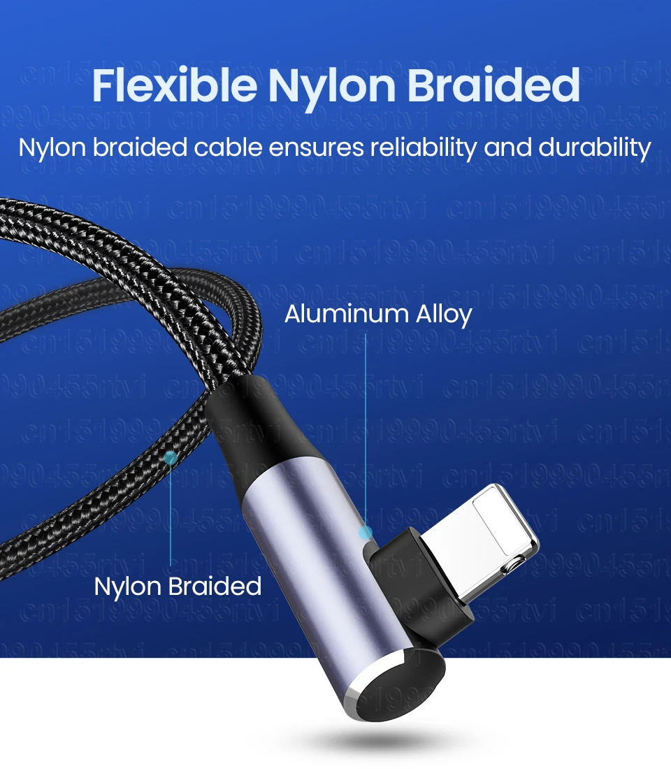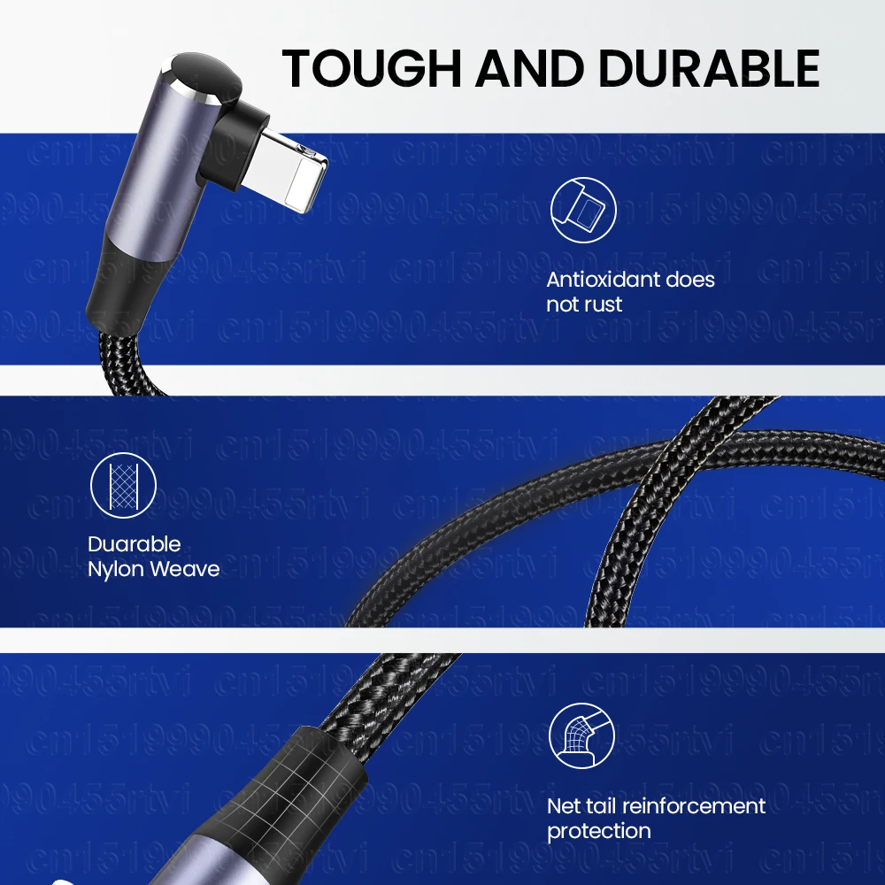 Cable de carga USB codo para iPhone 13 12 11 Pro Max XS 6S 7 8 Plus Cable DE CARGA DE TELÉFONO MÓVIL DE ORIGEN Cable de cargador de datos 1/2/3M