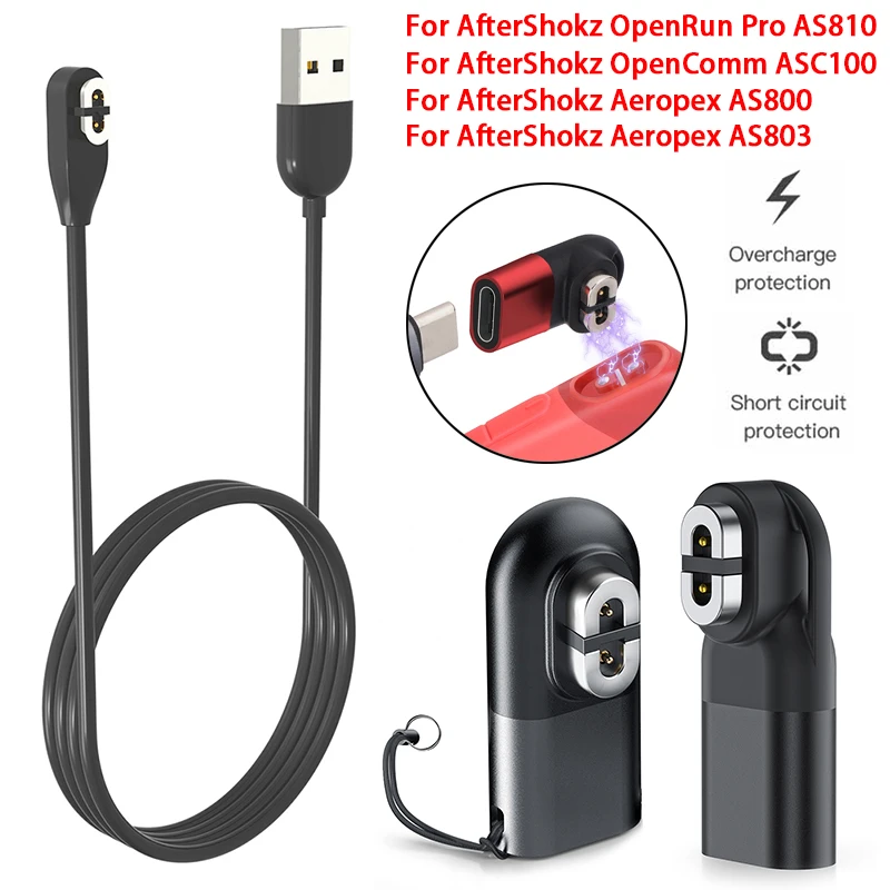 Cargador de auriculares de conducción ósea de 60cm/100cm, piezas de repuesto, Cable cargador de auriculares, accesorios para auriculares para OpenComm ASC10060/100cm reemplazo portátil 5V 1A Cable de carga magnético conducción ósea auriculares cargador accesorios paraOpenRun Pro AS810/AS803