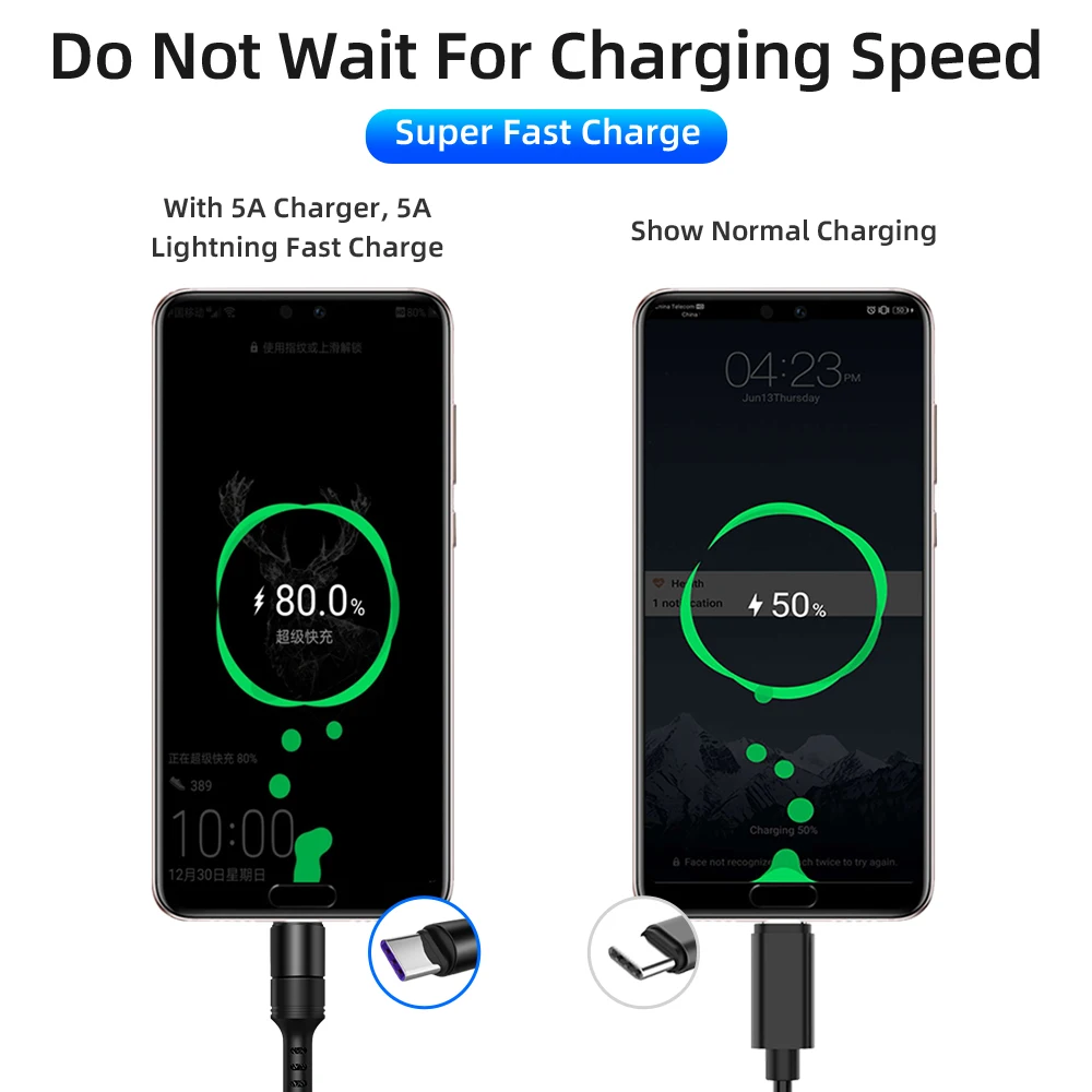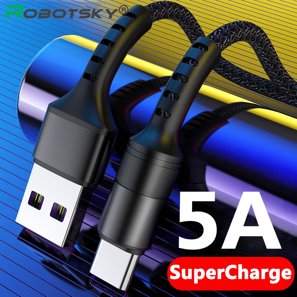 Cable USB tipo C 5A 0,25 m 1m 2m carga rápida tipo-c apto para Huawei P30 P20 Mate 20 Pro teléfono supercarga QC3.0 USBC Cabo