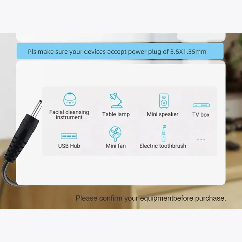 Para mini ventilador/luz LED de píxeles/cámara/teléfono móvil/tableta/banco de energía/enrutador de teléfono VoIP/MP3/enrutador de cámara web/juguete/altavoz Bluetooth/enrutador de cámara web/grabadora/escáner/DVR/caja de disco duro/controlador Serato DJ/teléfono doméstico Sistema/cámara IP y más dispositivos de 5V.