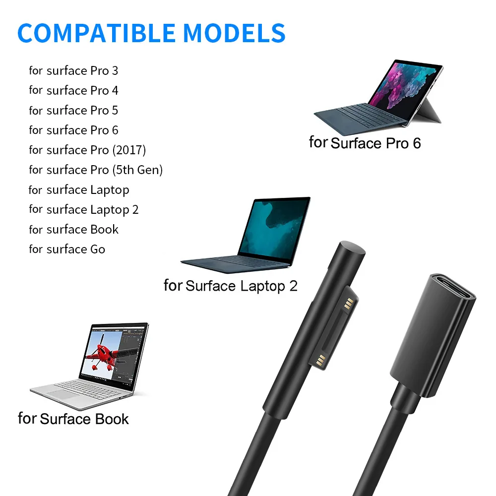 Comprar Cable de carga USB tipo C hembra 45W 15V 3A PD 0,2 M para Microsoft Surface Pro /6/5/4/3 Surface Go Book Laptop