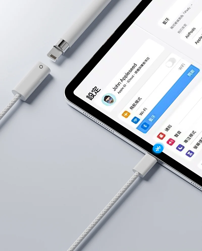 Cable de carga USB tipo C macho a hembra de 1M Bluetooth para Apple Pencil 1a generación Ipad PC tableta pluma fuente de alimentación solo