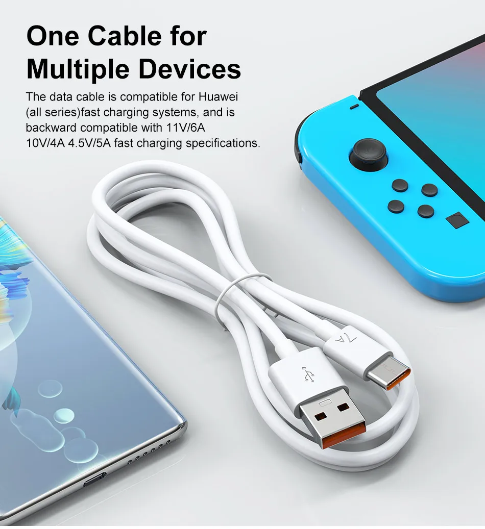 Comprar Cable de carga USB tipo C para móvil, Cable de datos de carga rápida 7A, 100W, para Huawei P40, P30, Xiaomi Mi 13, 12 Pro, Oneplus, Realme, POCO