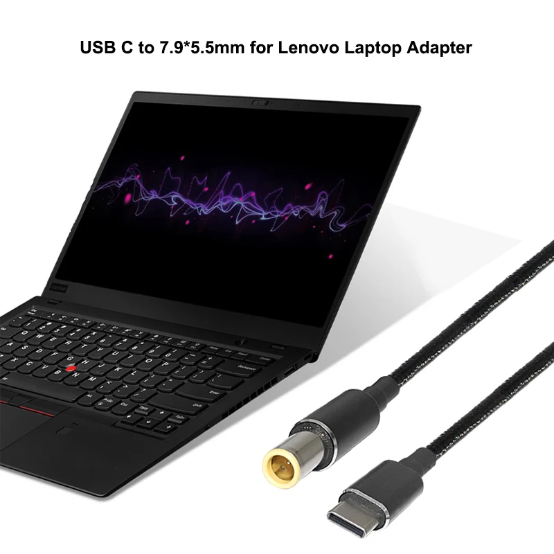 Cable de carga USB tipo C PD de 100W, Cable USB C a 7,9x5,5mm, conector adaptador de corriente para portátil para Lenovo Thinkpad T400 T410 T420 T430 T500 T510 T520 T530 T400s T410s