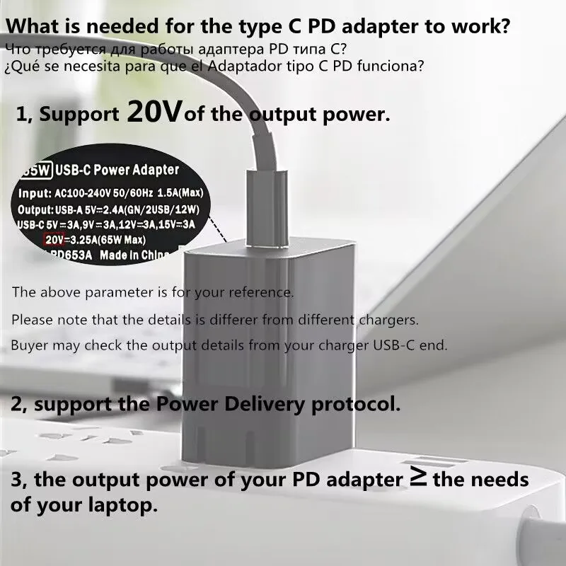 3. La potencia de salida de su adaptador PD tipo C no debe ser inferior a las necesidades de su ordenador portátil.