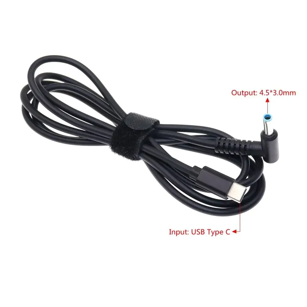 Comprar Cable de carga USB tipo C PD, convertidor de enchufe macho de punta azul, adaptador de corriente CC, cargador para portátil Hp, 65W, 19,5 V, 4,5x3,0mm