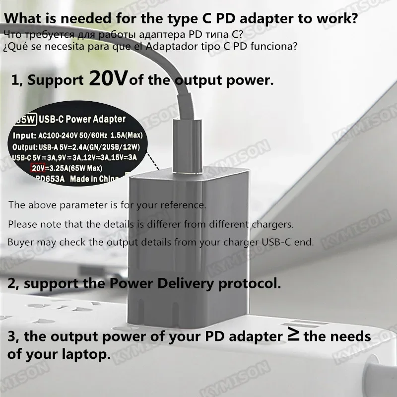 3. La potencia de salida de su adaptador PD tipo C no debe ser inferior a las necesidades de su ordenador portátil.