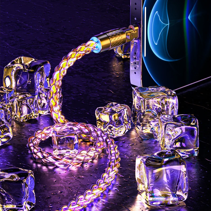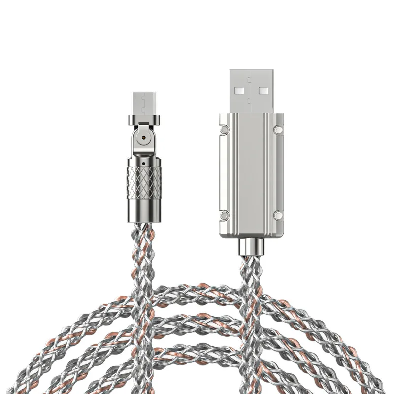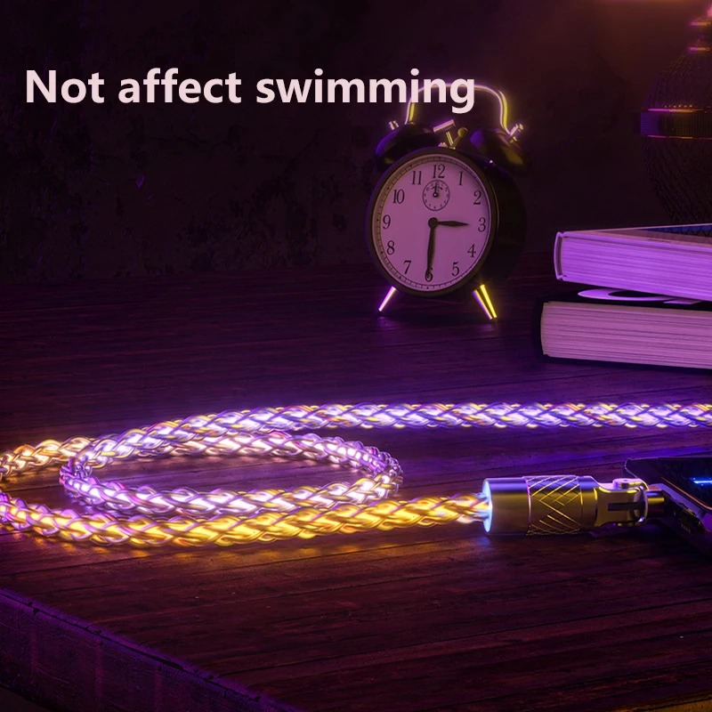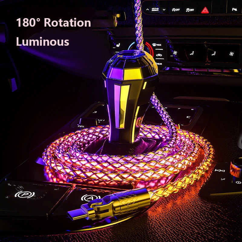 Cable de carga USB luminoso de flujo RGB giratorio 6A 180, Cable de teléfono Android tipo C para Samsung S10 S20 Xiaomi mi 11, Cable cargador de datos