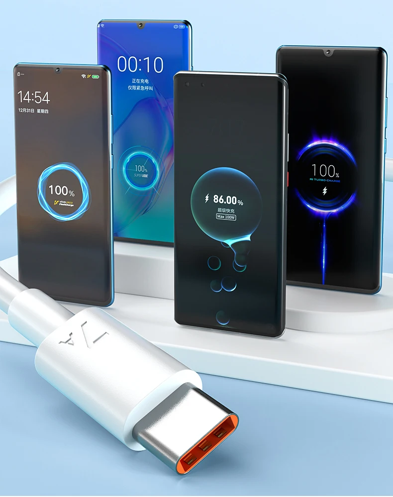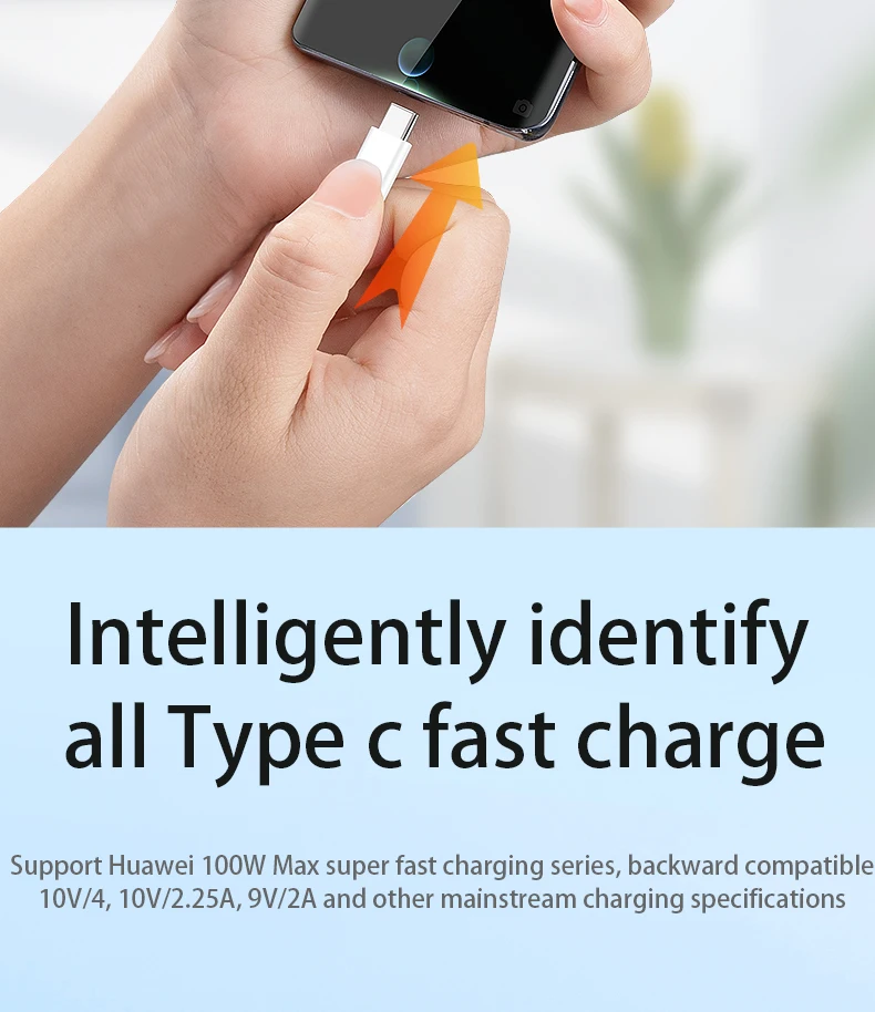 Cable de carga rápida para teléfonos móviles tipo C, la velocidad de carga dependerá de los dispositivos y del cargador. Por favor, cargue con un adaptador de corriente original/de alta calidad (o cargador de coche) para lograr el mejor rendimiento.