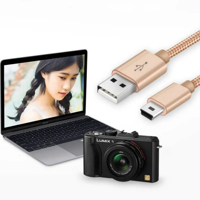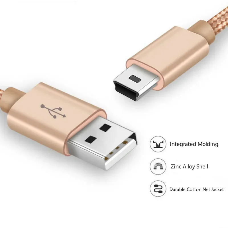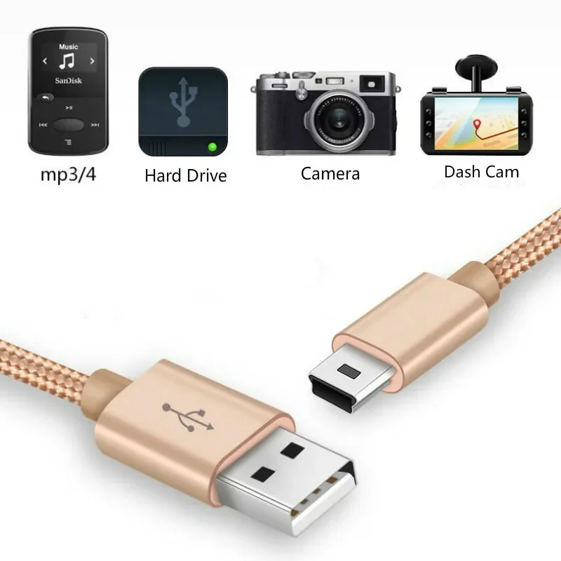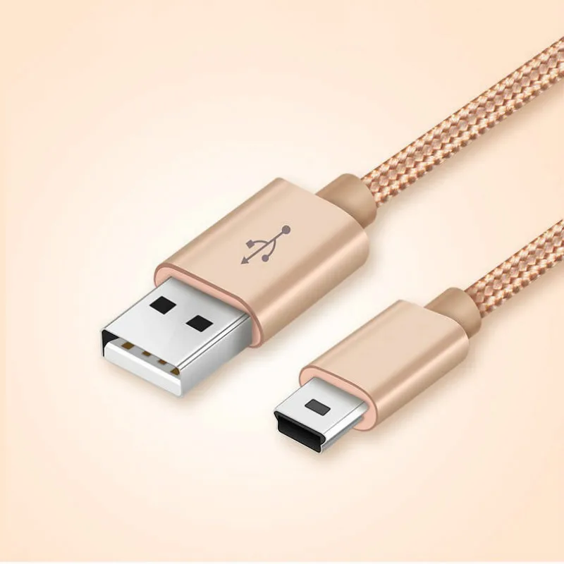 Cable cargador Mini USB 2,0 trenzado, a mini-b USB-A, Compatible con controlador PS3, cámara Digital, cámara de salpicadero, sincronización de reproductor MP3