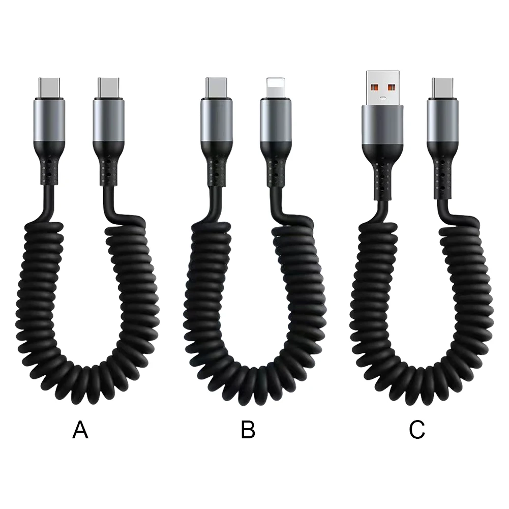 Cable de datos corto de resorte de 100/27/66W 6A USB tipo C resorte cargador rápido telescópico Cable USB de resorte para Huawei Xiaomi Samsung