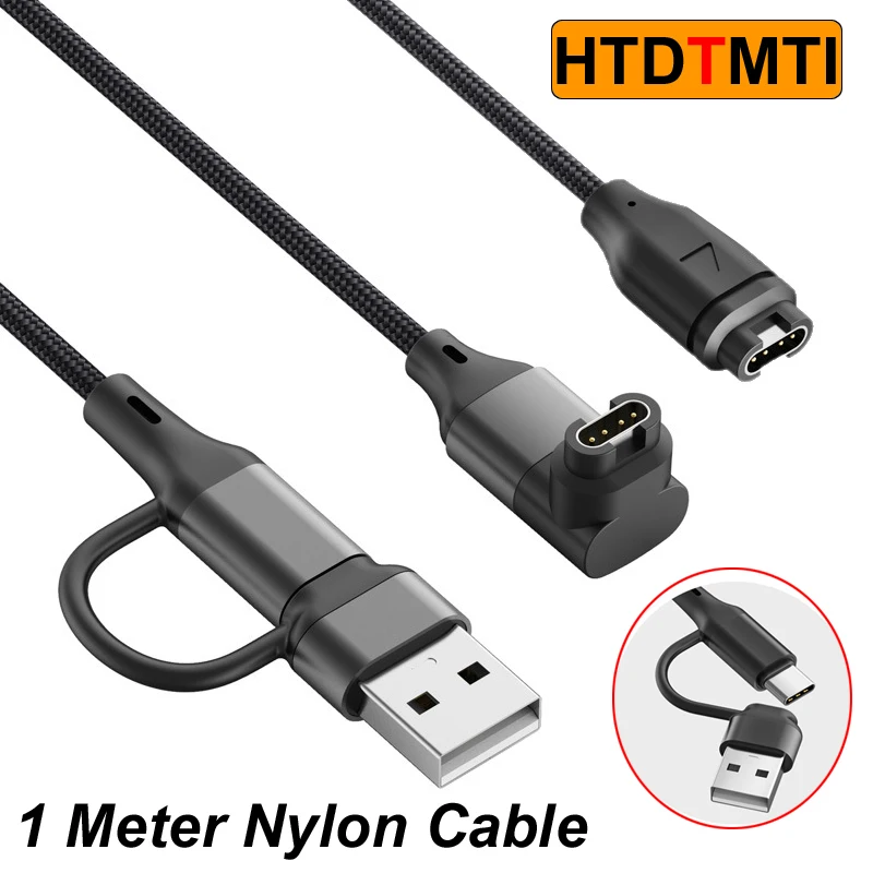 Cable cargador recto de nailon USB A TYPE-C de 1M para Garmin Fenix 7 7S 7X 6 Vivoactive 3 Forerunner 945 935 245 cargador de cable de datos Instinct