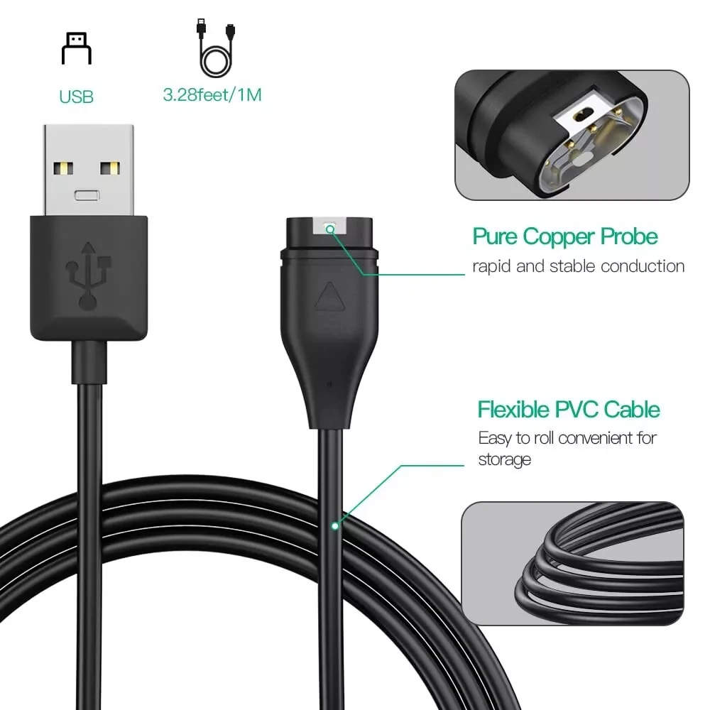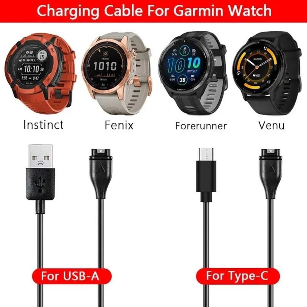 Cable cargador de reloj USB tipo C para Garmin Fenix 7 7S 7X Forerunner 255 955 945 45 245 Quatix 5 Vivomove 3 Cable de carga de reloj