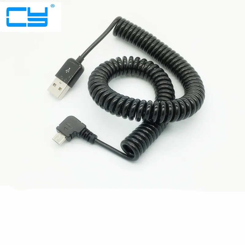 Comprar Cable cargador de sincronización de datos para teléfonos móviles Android, Cable en espiral USB 2,0 macho a Micro USB, resorte de codo derecho de 90 grados, 3M/10 pies