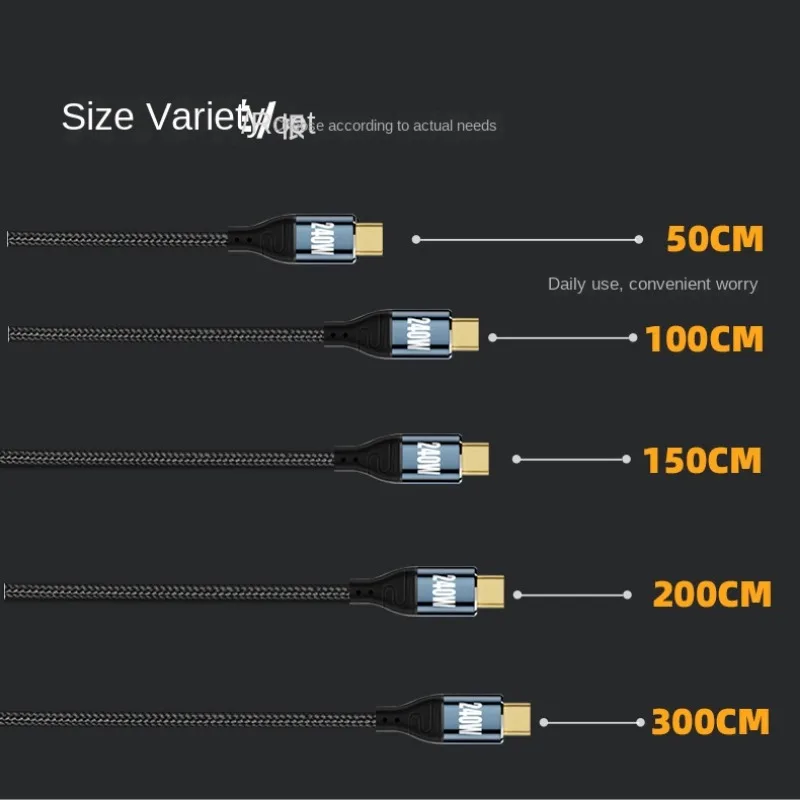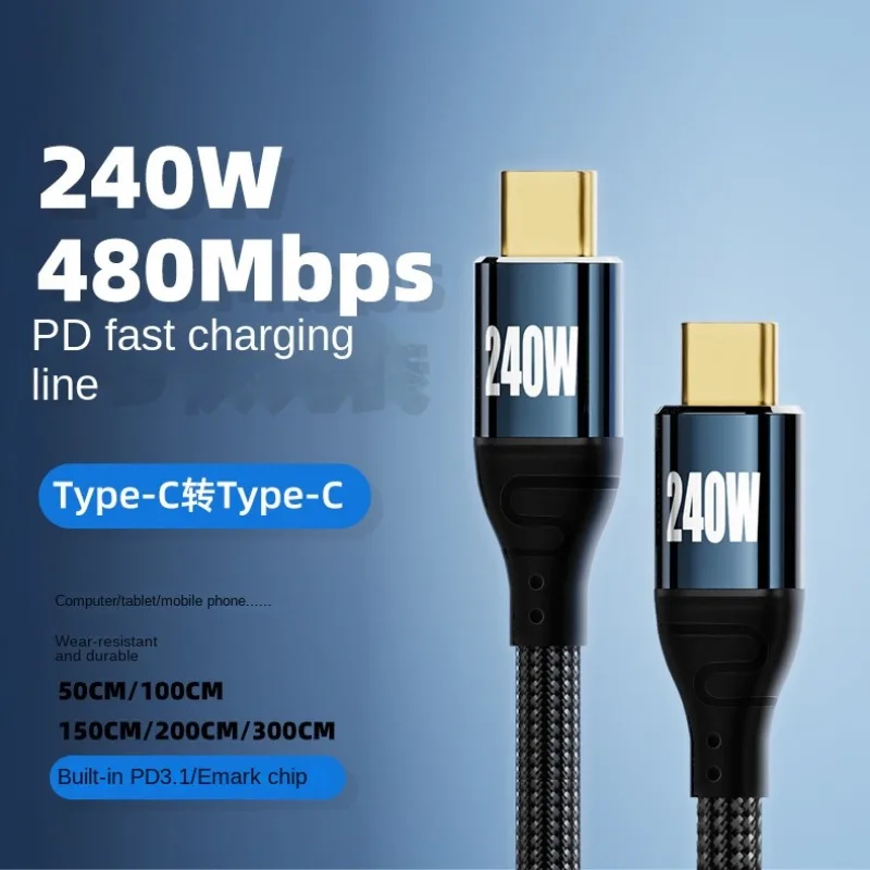 PD3.1 240W USB Tipo C Cable Línea de alimentación para PS5 Nintendo Switch Galaxy S22 MacBook Blazing-Cable de carga rápida 48V5A USB C CableColor: negro,Longitud: 0,5/1m/1,5 m/2M/3mMaterial del alambre: carcasa metálica + Transmisión de malla tejidaVersión: 240WFunción: función PD Transmisión de datos de carga (480Mbps)Lista: Cable PD tipo C * 1