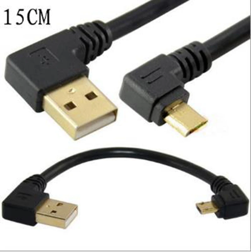 Comprar Cable cargador USB 2,0 chapado en oro, USB de ángulo recto a esquina izquierda macho, sincronización de datos de 90 grados, tarjeta de Cable de carga Micro 15CM 50cm