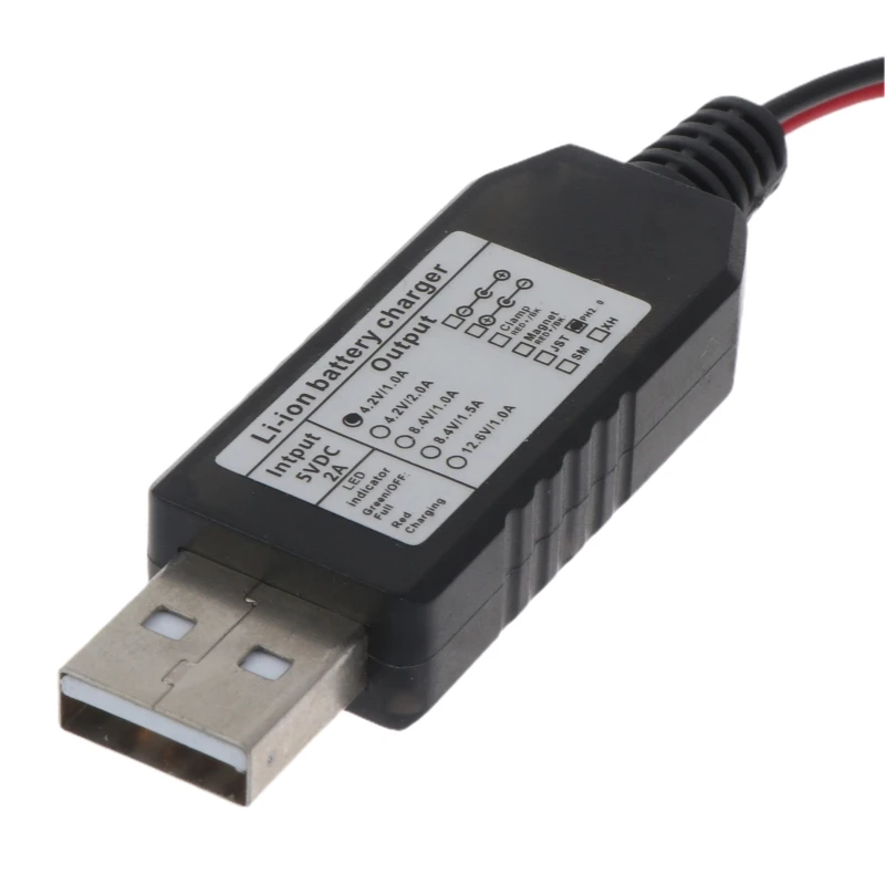 Entrada de puerto USB 5V/2A, salida de enchufe PH2.0 de 2 pines y 2,0 mm 4,2V/1A.