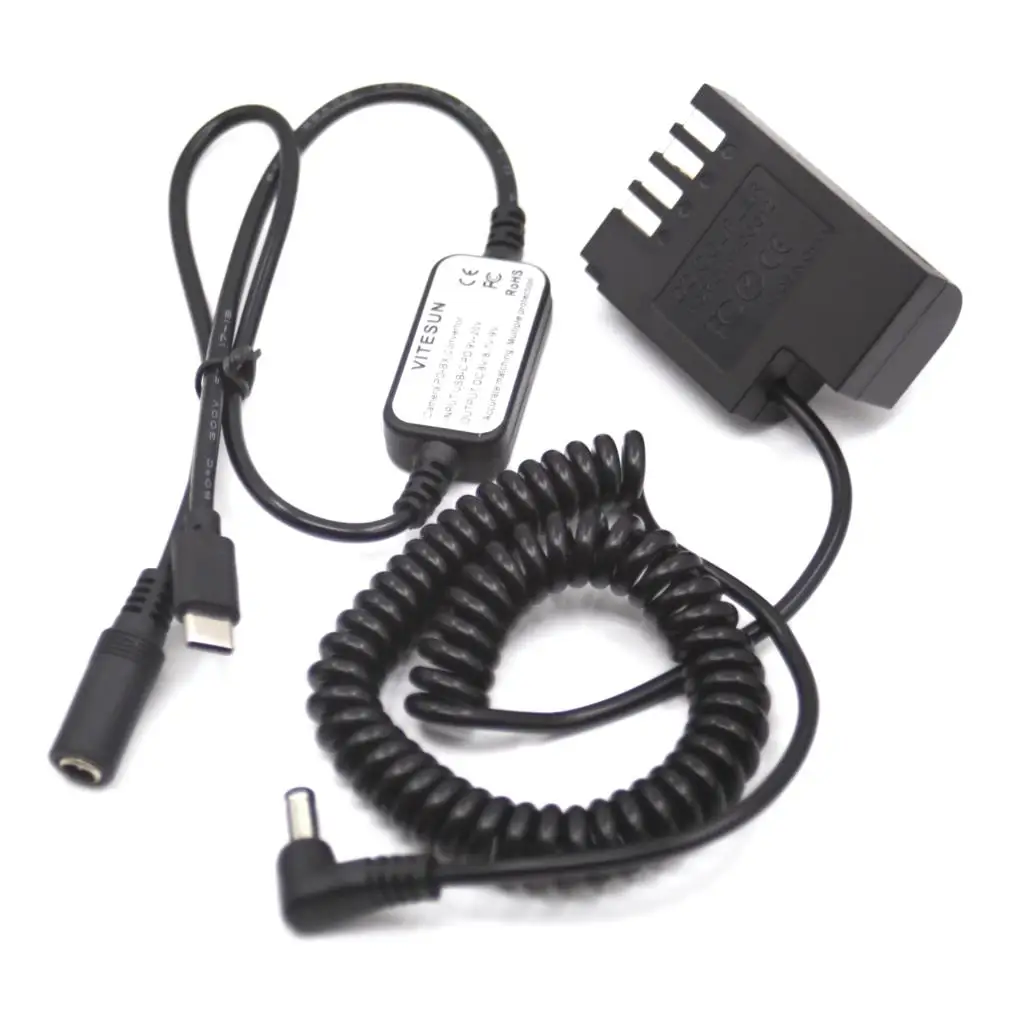 Batería simulada DCC12 DMW-BLF19 acoplador de resorte CC + Cable cargador de banco de energía USB C para Panasonic Lumix DMC-G9 LGK GH3 GH4 GH5