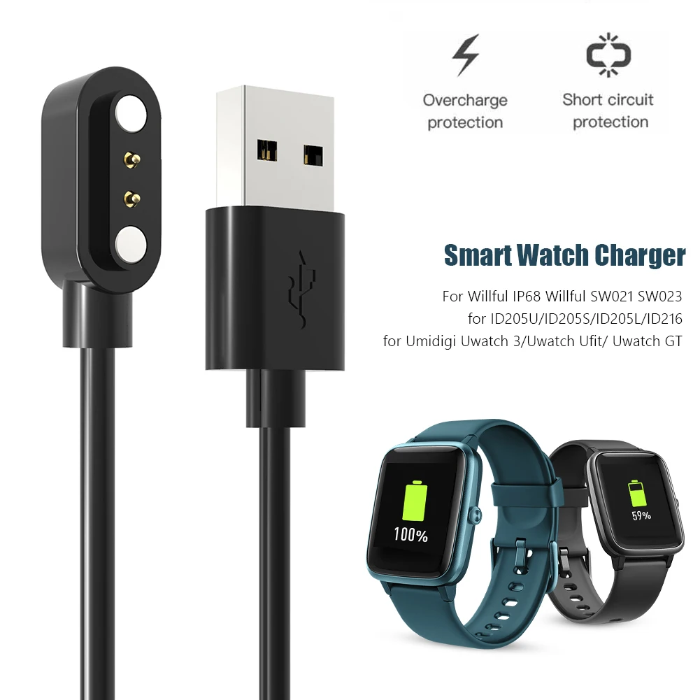 Cable cargador USB magnético para reloj inteligente para Willful IP68/SW021/SW025/SW01/SW023/ID205U/Umidigi Uwatch 3