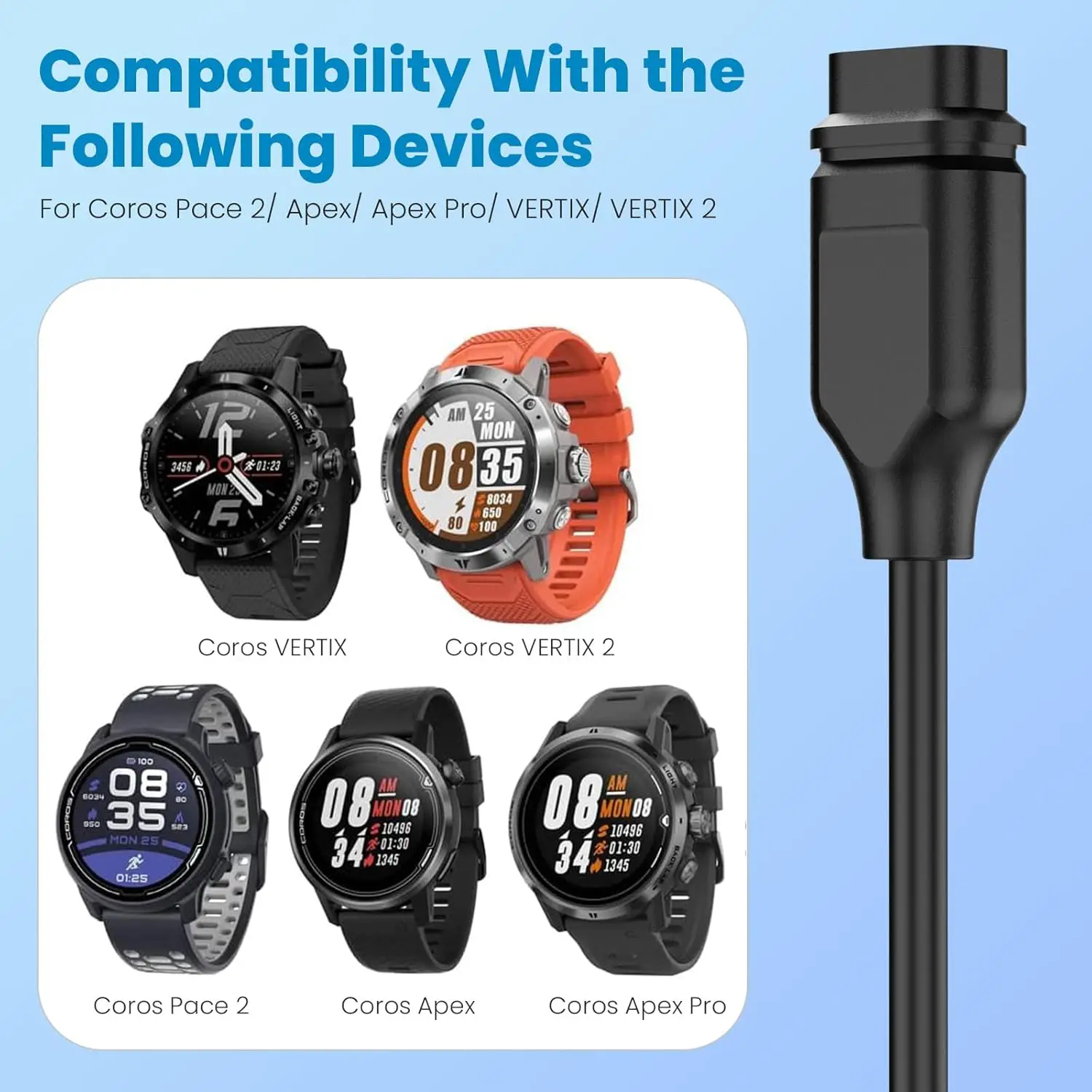 Compatibilidad: este cargador es compatible con el reloj inteligente Coros Pace 3/Pace 2/Apex Pro/Apex 42 mm/Apex 46 mm/Vertix/Vertix 2.