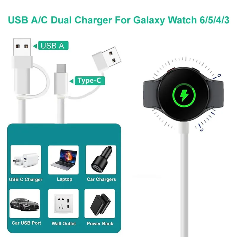 Compatible con Samsung Galaxy Watch 6/watch 6 Classic/watch 5/Samsung Galaxy Watch 5 PRO, Galxy Watch 4/3/Active2/Active, (cargador de repuesto, NO cargador original, NO es para teléfonos, reloj o soporte)