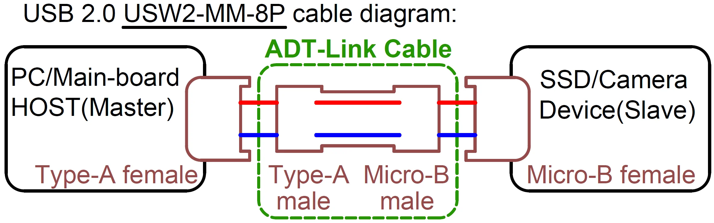 MarcaNúmero de piezaDescripción del productoADTLINKUS1C-UW3RUSB 2,0 Tipo-A Macho recto a Micro-B Cable plano macho de curva ascendenteADTLINKUS2C-UW3RUSB 2,0 Tipo-A Down-Bend macho a Micro-B Up-Bend macho cable planoADTLINKUS1C-UW4USB 2,0 tipo A recto macho a Micro-Cable plano hembra BADTLINKUS2C-UW4USB 2,0 Tipo-A Down-Bend macho a Micro-B hembra cable planoVentajas del producto: