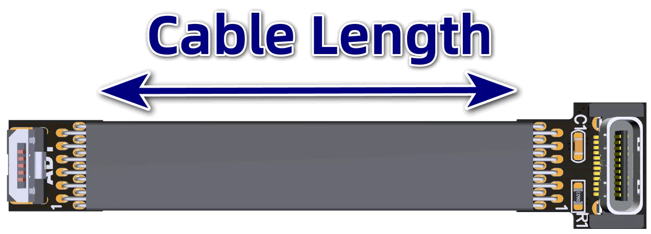La Longitud del cable se refiere a la parte del cable visible. No incluye el PCB ni el conector. Para la longitud del cable, consulte la flecha azul de 5cm en la siguiente figura.