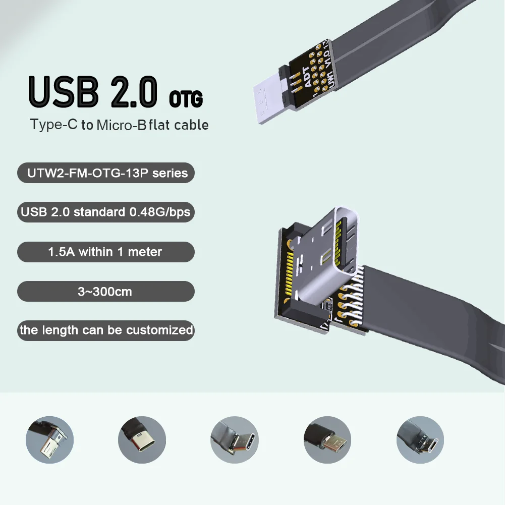 Comprar Cable de cinta Micro Usb tipo C a micro-b 2,0, Cable de fotografía de doble ángulo macho y hembra, extensión plana de 90 grados